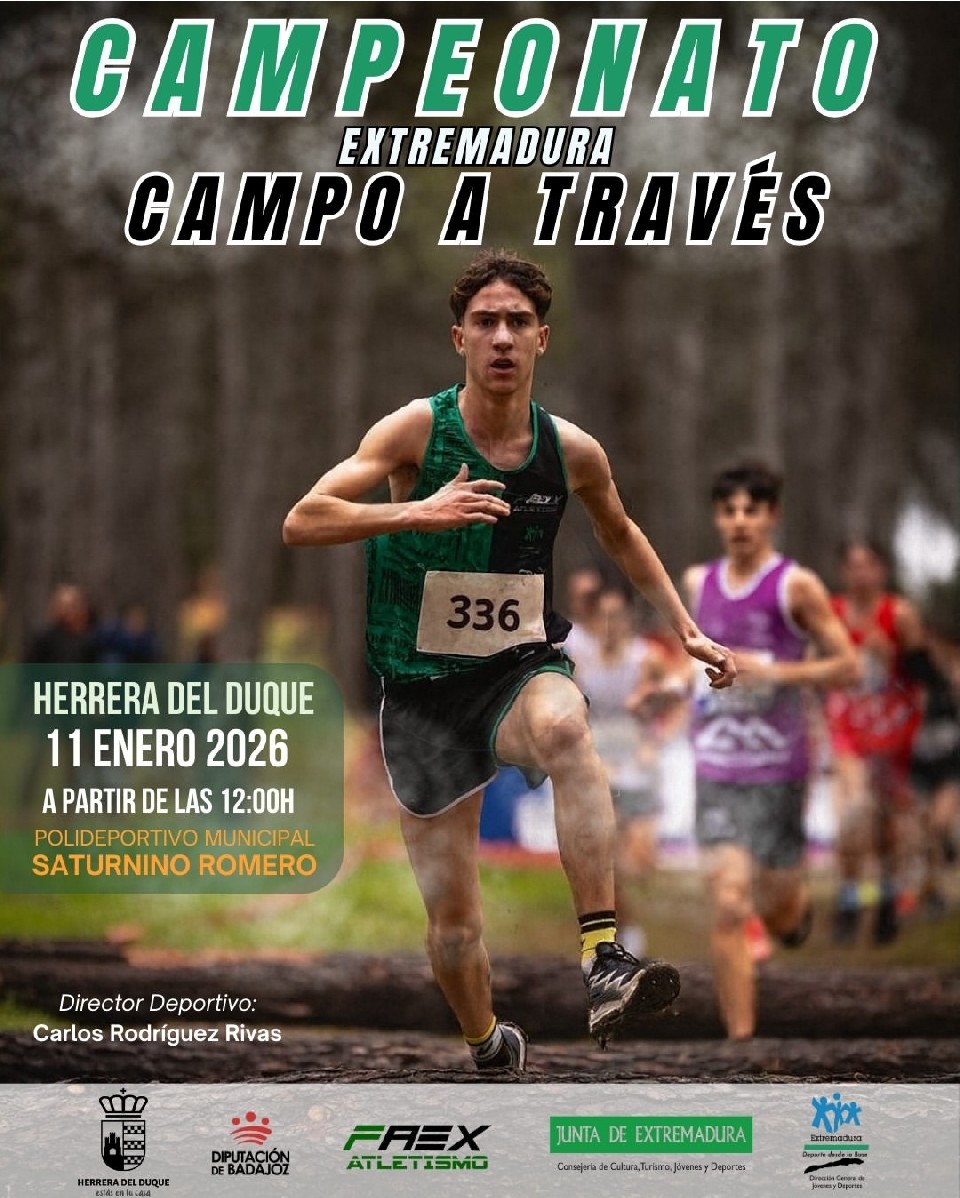 Sailkapenak Sub 20 y Master 11/01/2026 12:00 5km Sailkapenak ikusi Popular 11/01/2026 12:01 5km Sailkapenak ikusi Sub 8 11/01/2026 12:31 0.5km Sailkapenak ikusi Sub 10 11/01/2026 12:40 0.5km Sailkapenak ikusi Sub 18 11/01/2026 12:47 4km Sailkapenak ikusi Sub 14 11/01/2026 13:21 2km Sailkapenak ikusi Sub 12 11/01/2026 13:12 1km Sailkapenak ikusi Sub 16 11/01/2026 13:40 3km Sailkapenak ikusi Sub 23 / Absoluta 11/01/2026 14:02 6.998km Sailkapenak ikusi Kontaktuaren informazioa Antolatzailearekin harremanetan jarri – 927 21 40 50 Araudia https://www.atletismo-ext.com/es/actividad-1043/campeonato-de-extremadura-de-campo-a-traves