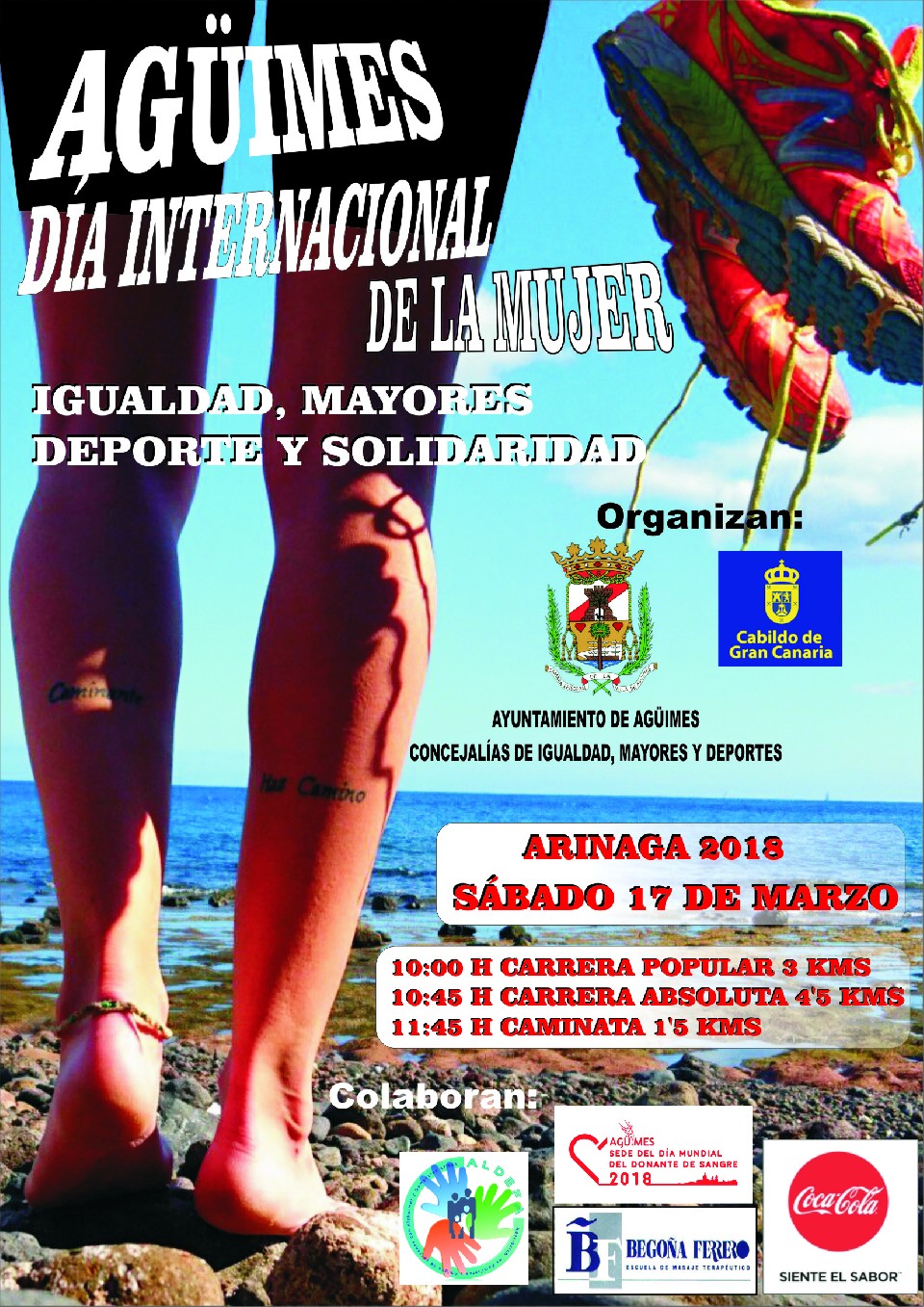 Desde las Concejalías de Deportes, Igualdad y Solidaridad del Ilustre Ayuntamiento de la Villa de Agüimes, hemos decidido celebrar en el presente año 2018, dentro de los actos por el día internacional de la mujer, una carrera abierta a la participación de