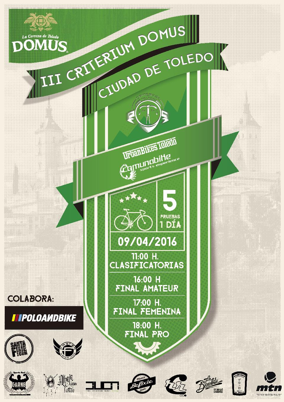 III Criterium Domus Ciudad de Toledo se celebrará el sábado 09 de Abril en las instalaciones inmediaciones de la fábrica de Cerveza Domus, Dirección: C/Rio Jarama 140b Complejo Industrial Margarita. Nave B16, 45007 Toledo.