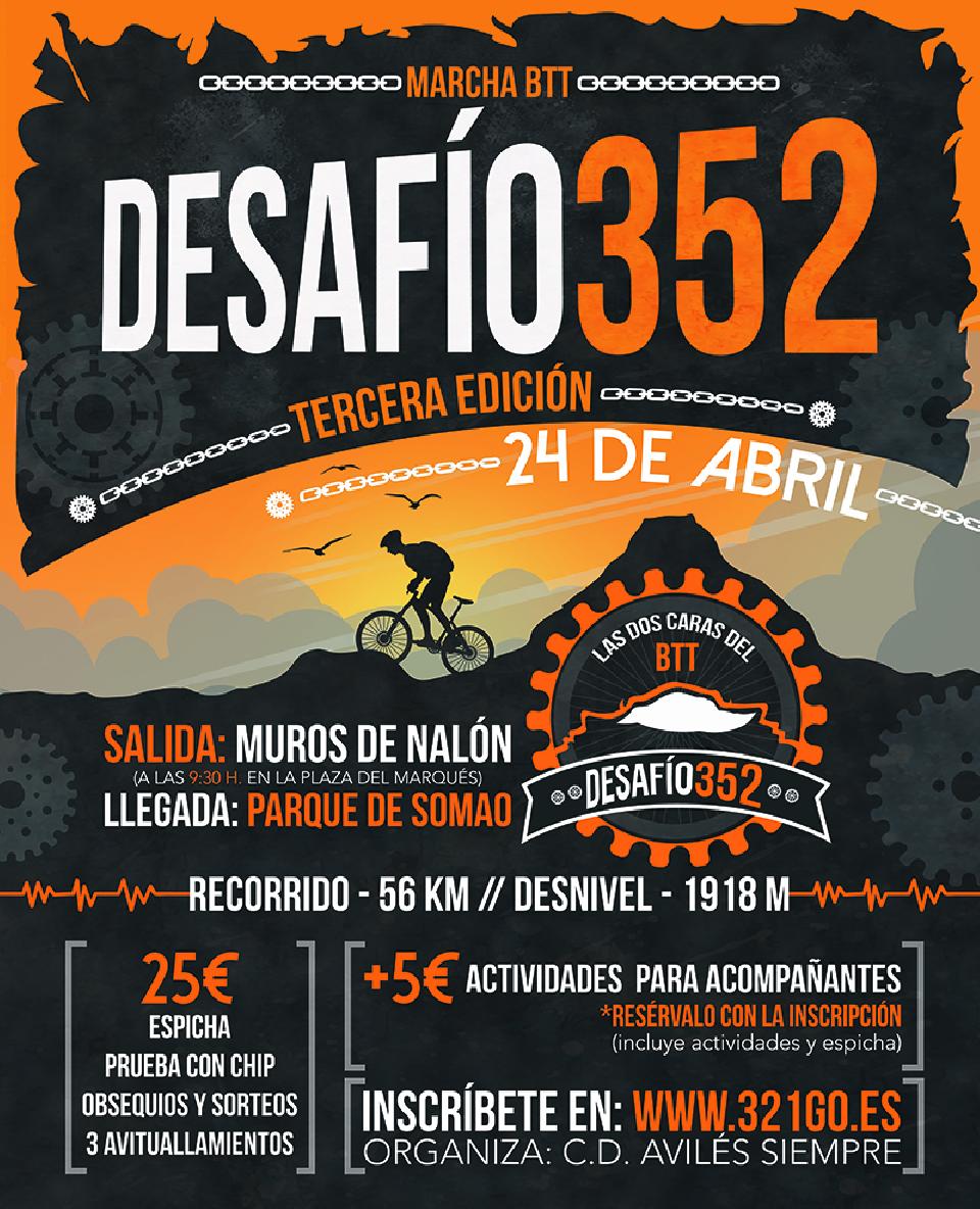 CLUB DEPORTIVO AVILES SIEMPRE ORGANIZA LA MARCHA CICLOTURISTA DE MONTAÑA DENOMINADA DESAFIO 352. LA DENOMINADA MARCHA SE REGIRA POR EL SIGUIENTE REGLAMENTO DETALLADO EN LOS SIGUIENTES PUNTOS: