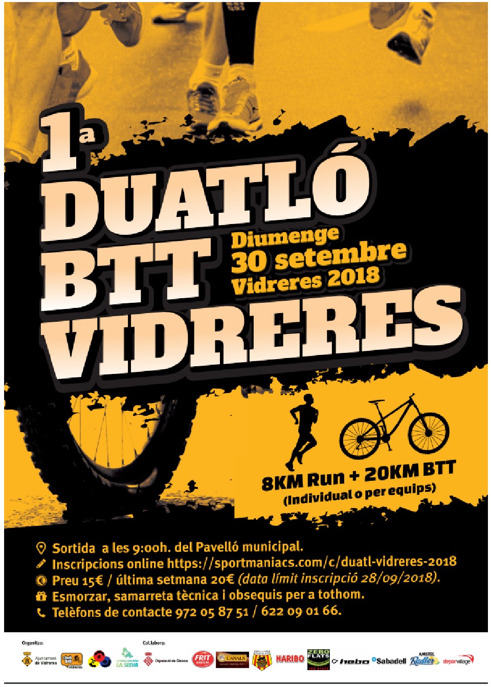 Cursa popular per a majors de 18 anys, (individuals o per equips) de 8km RUN + 20km BTT per espais urbans, entorns naturals i pistes forestals del terme municipal de Vidreres