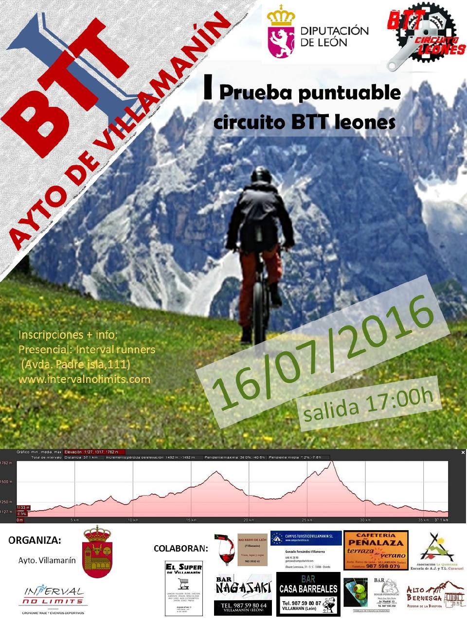 L A “ I B T T A Y U N T A M I E N T O D E V I L L A M A N I N ” E S L A 1 ª D E L A S 8 P R U E B A S P U N T U A B L E S P A R A E L “ I C I R C U I T O L E O N É S B T T ” Y T E N D R Á L U G A R E L P R Ó X I M O 1 6 D E J U L I O D E 2016 A P A R T I R D E L A S 1 7 : 0 0 H C O N S A L I D A Y M E T A E N D I C H A L O C A L I D A D . C O N S T A R Á D E U N Ú N I C O R E C O R R I D O C I R C U L A R D E 3 8 K I L Ó M E T R O S.