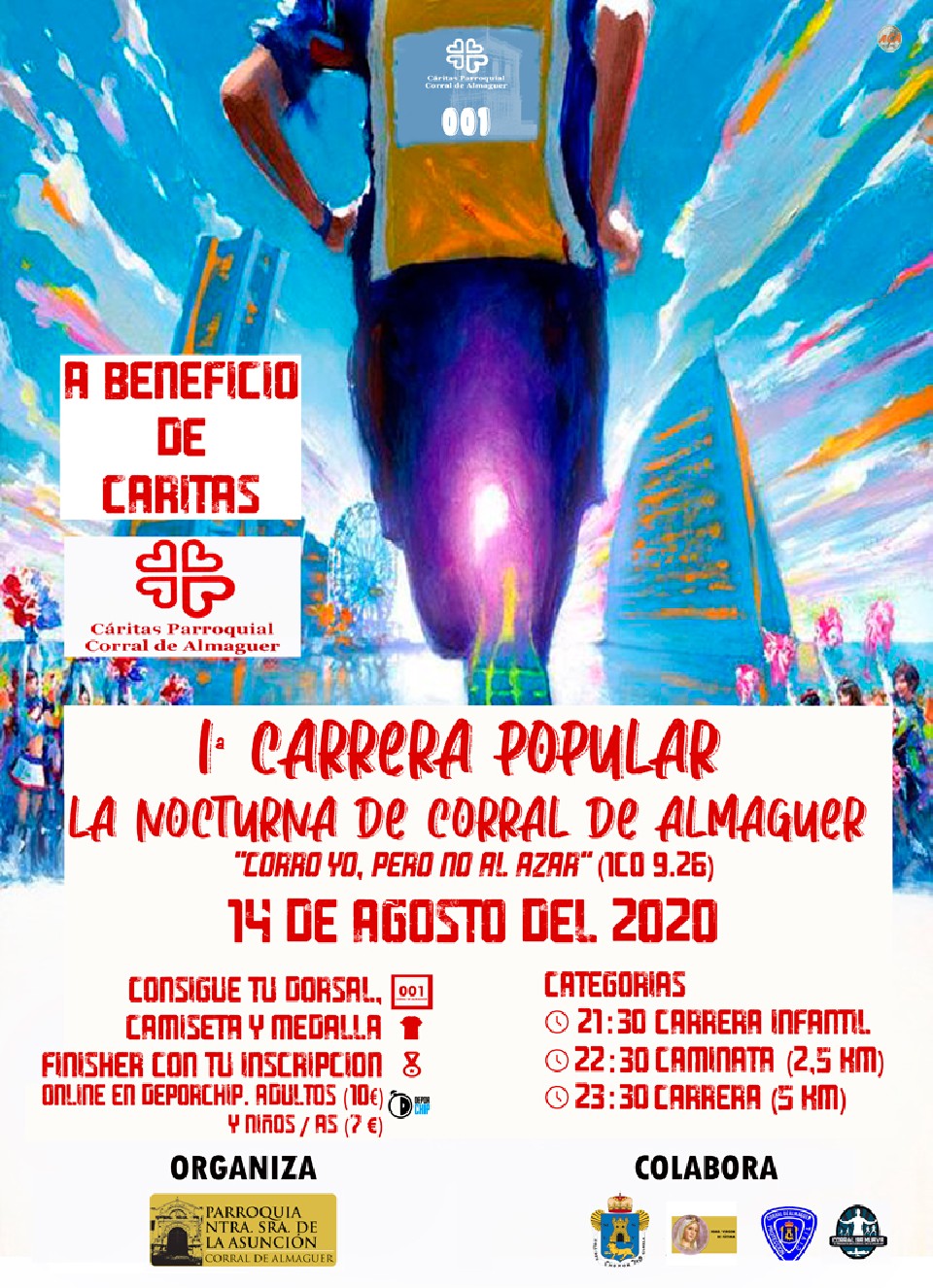 Sailkapenak CARRERA 5K MAS Y FEM 14/08/2020 23:30 5km Sailkapenak egiteke MARCHA SOLIDARIA 2,5K 14/08/2020 22:30 2.5km Sailkapenak egiteke MENORES HASTA 15 AÑOS MAS Y FEM 14/08/2020 21:30 Sailkapenak egiteke Kontaktuaren informazioa Antolatzailearekin harremanetan jarri – Araudia https://deporchip.com/eventos/pruebas2020/nocturnacorraldealmaguer20/reglamento.pdf