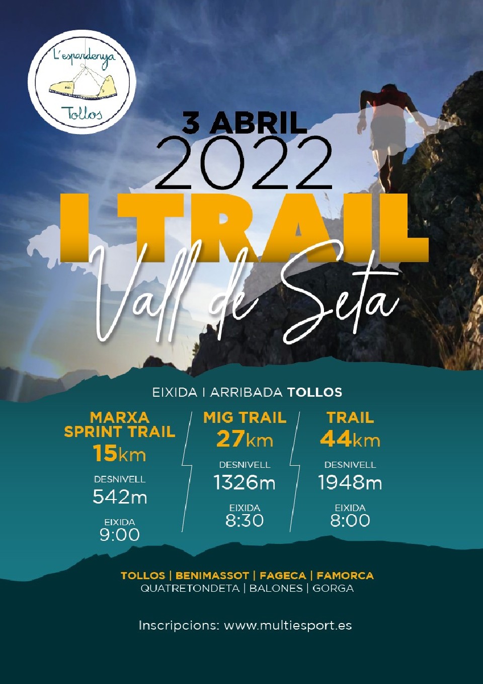 El I Trail Vall de Seta tindrà lloc el diumenge 3 d’abril de 2022 amb inici i fi a l’entrada del poble de Tollos (03813, Tollos, Alacant).