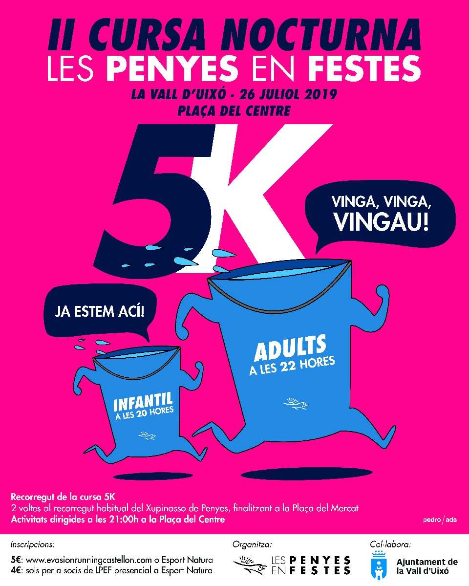 La asociación cultural Les Penyes en Festes organiza el II 5k NOCTURN LES PENYES EN FESTES con el patrocinio del Excelentísimo Ayuntamiento de La Vall d´Uixó.