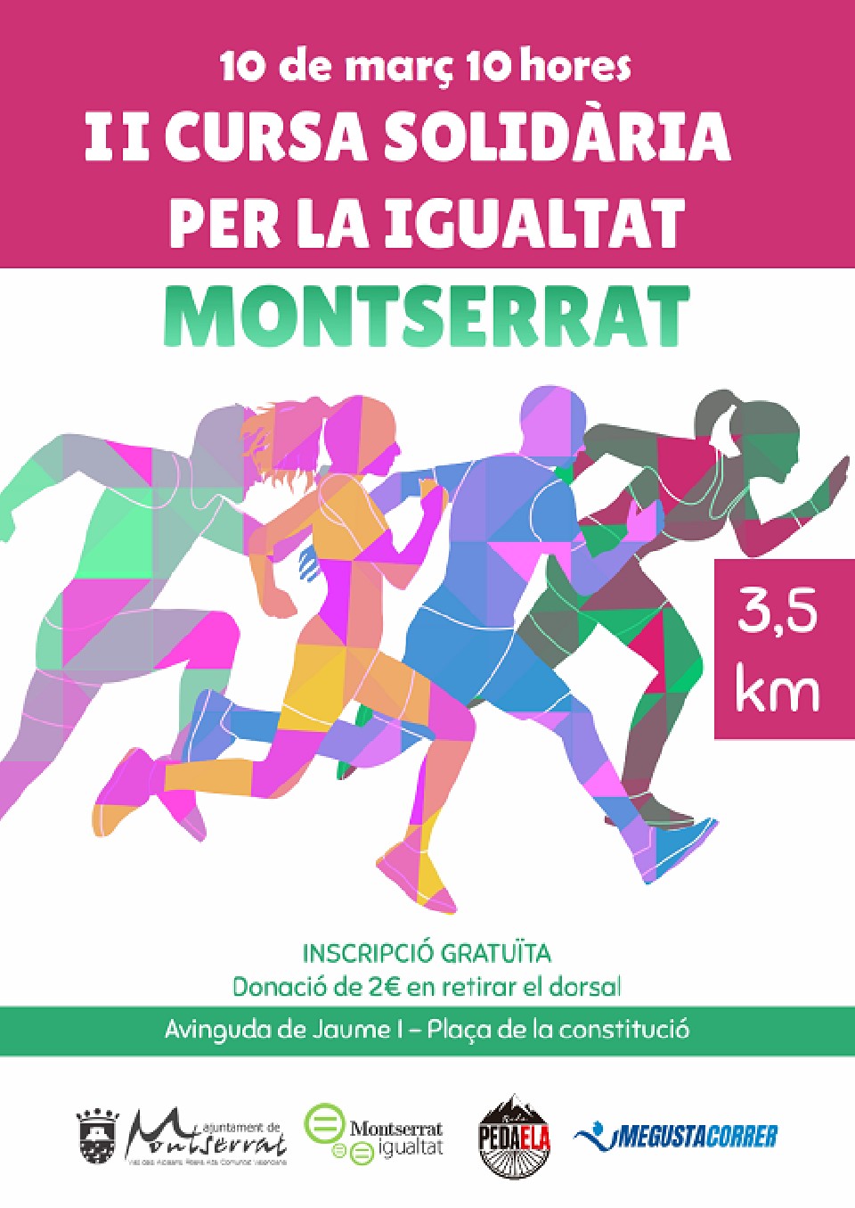 L’Ajuntament de Montserrat organitza el diumenge 10 Març la II Cursa Solidària per la Igualtat, tots els diners recaptats s’entregaran a la ONG PEDELEA.