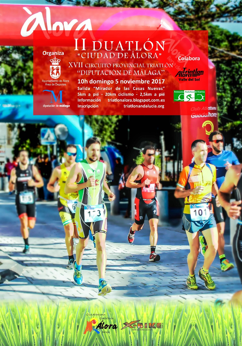 Sailkapenak MASCULINOS 05/11/2017 10:00 27.5km Sailkapenak ikusi FEMENINAS 05/11/2017 10:00 27.5km Sailkapenak ikusi FEDERADOS 05/11/2017 10:00 Sailkapenak egiteke NO FEDERADOS 05/11/2017 10:00 Sailkapenak egiteke Kontaktuaren informazioa Antolatzailearekin harremanetan jarri – 639616571 Araudia http://www.triatlonandalucia.org/competiciones/ii-duatl%C3%B3n-ciudad-de-%C3%A1lora