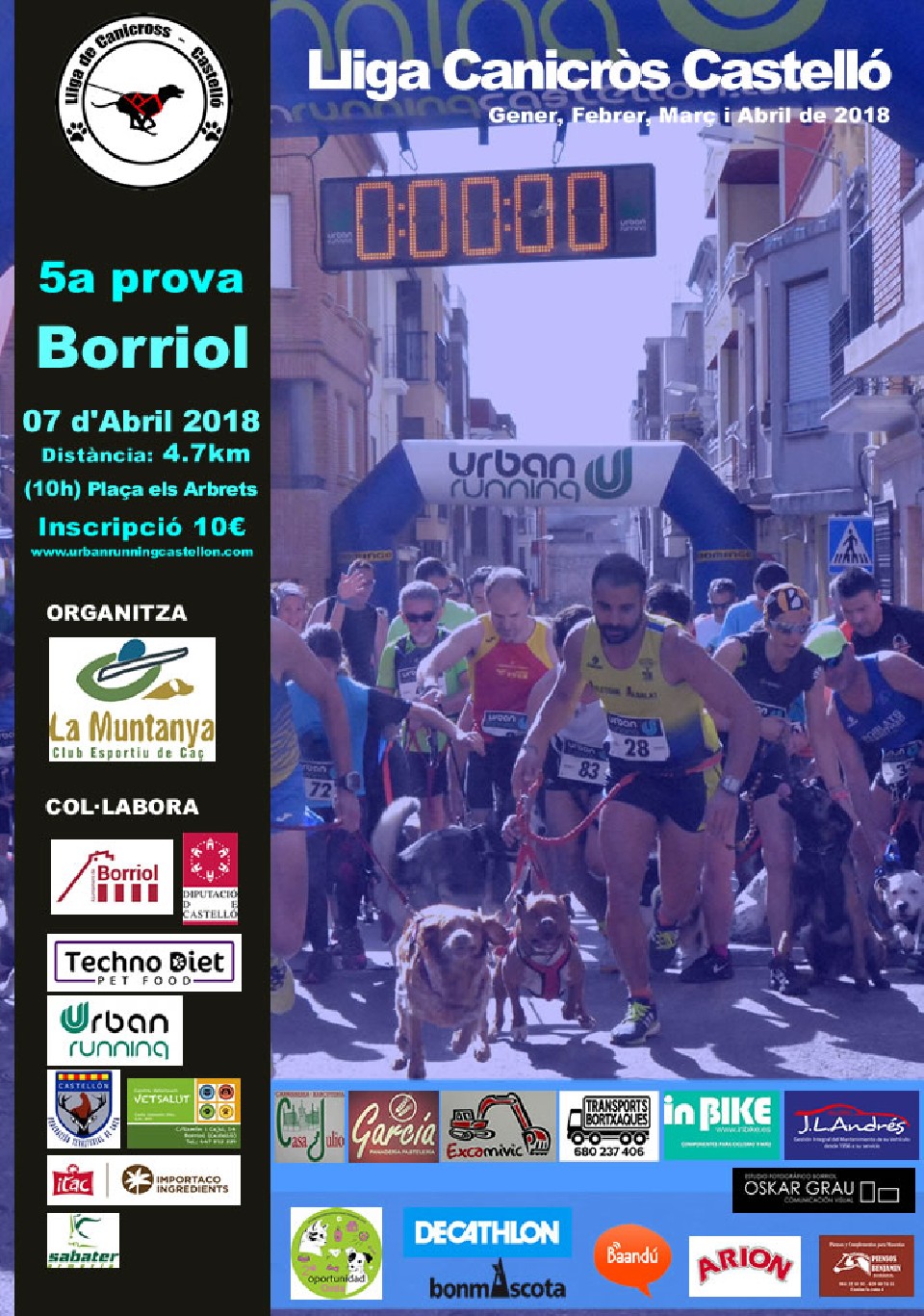 La cinquena i última prova de la Lliga tindrà lloc a Borriol el dissabte 07 d'Abril de 2018, a partir de les 10:00 hores, amb sortida i arribada a la Plaça dels Arbrets.