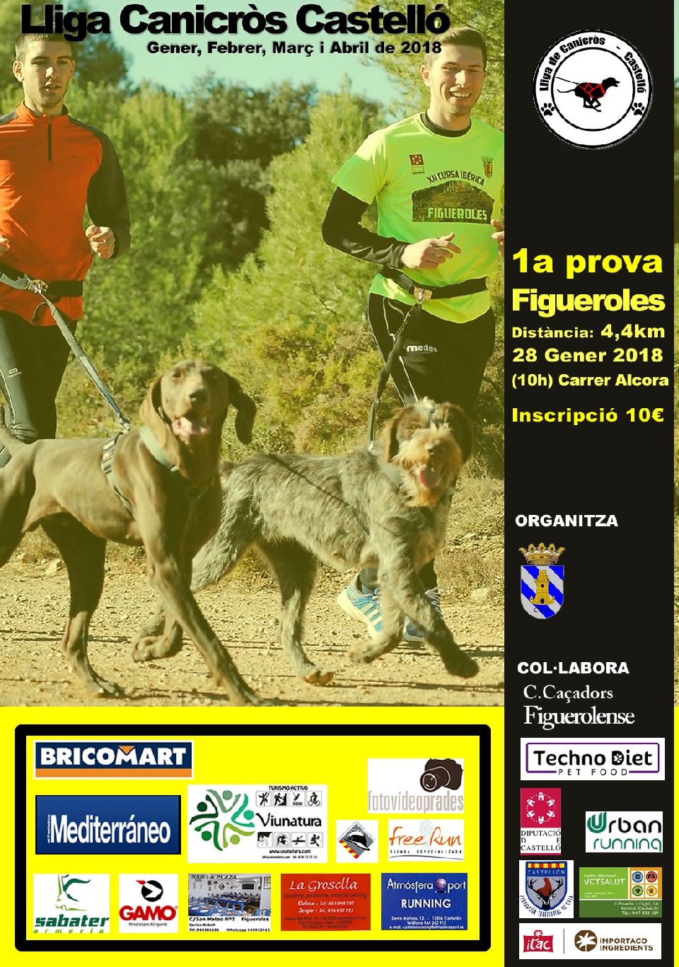 Aquest any 2018 continuem amb el projecte de la Lliga de Canicròs Castelló, amb un total de 5 proves. Les quals tindran lloc en Figueroles (28 Gener), Cabanes (11 Febrer), Vilanova d'Alcolea (24 Febrer), La Serra d'en Galceran (25 Març) i Borriol (07 Abril).La Lliga de Canicross naix amb l'objectiu de fomentar la pràctica d'una disciplina esportiva poc coneguda en les nostres comarques, que combina l'esport i el respecte per la natura i pels animals La primera prova de la Lliga tindrà lloc a Figueroles el diumenge 28 de gener de 2018, a partir de les 10:00 hores, amb sortida i arribada al carrer l'Alcora.