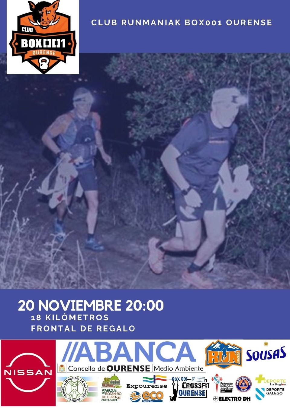 Club Run Maniak Box001 Ourense coa colaboración da Federación Galega de Atletismo – Delegación en Ourense, Concello de Ourense – Consello Municipal de Deportes, Deputación de Ourense – INORDE, organiza o II Trail Nocturno de Ourense, que se celebrará o sábado, 20 de novembro de 2021 a partir das 20:00 h., con saída e meta na explanada de EXPOURENSE.