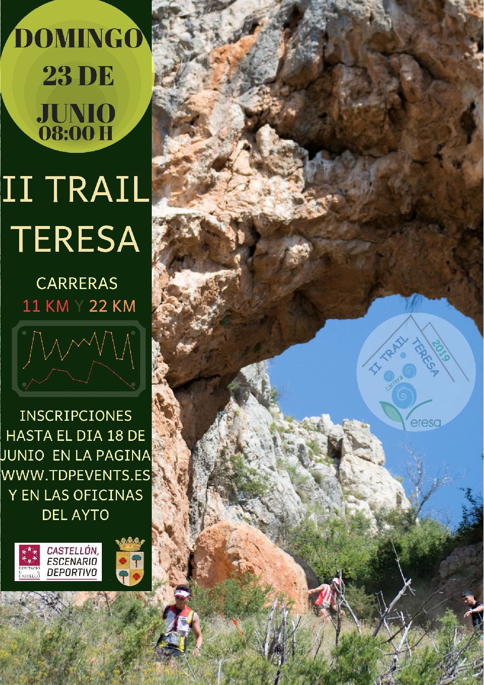 Sailkapenak II TRAIL TERESA 22K 21.7km Sailkapenak egiteke MARCHA A PIE TERESA 11K 10.7km Sailkapenak egiteke Kontaktuaren informazioa Antolatzailearekin harremanetan jarri – 964322230 Araudia https://www.tdpevents.es/teresa2019/