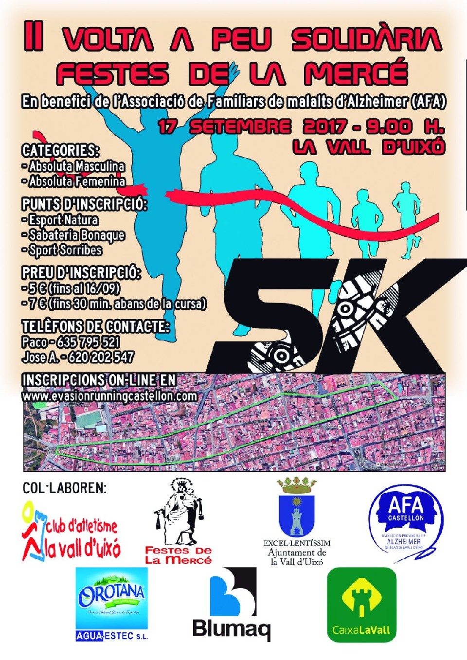 Sailkapenak 5k - Volta a Peu Solidària Festes de la Mercé 17/09/2017 09:00 5km Sailkapenak egiteke Kontaktuaren informazioa Antolatzailearekin harremanetan jarri – 635795521 (Paco) Araudia http://www.atletismelavallduixo.es/