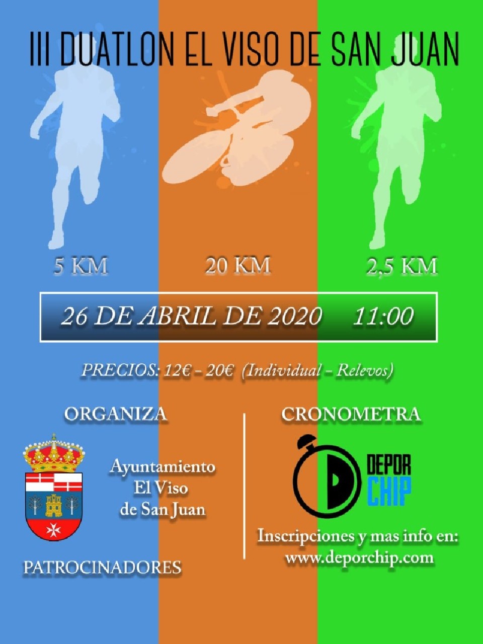 Sailkapenak GENERAL MAS Y FEM 26/04/2020 11:00 27.5km Sailkapenak egiteke RELEVOS MAS, FEM Y MIXTOS 26/04/2020 11:00 27.5km Sailkapenak egiteke Kontaktuaren informazioa Antolatzailearekin harremanetan jarri – Araudia https://www.deporchip.com/eventos/pruebas2020/duatlonelviso20/reglamento.pdf
