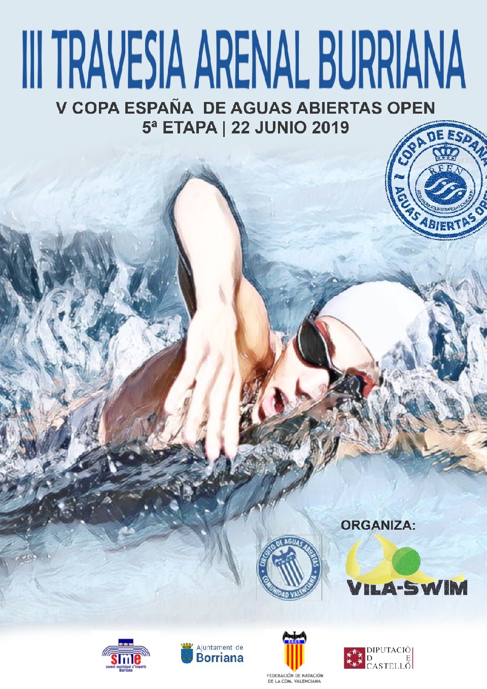 La III TRAVESÍA ARENAL BURRIANA 5ª ETAPA de la V COPA ESPAÑA DE AGUAS ABIERTAS RFEN /CTO AUTONÓMICO DE LA COMUNIDAD VALENCIANA es una prueba deportiva organizada por el Club Natación VILA-SWIM con la colaboración del Servicio Municipal de Deportes de Burriana. El evento se celebrará en la Playa del Arenal de Burriana (Castellón) el 22 de Junio de 2019.
