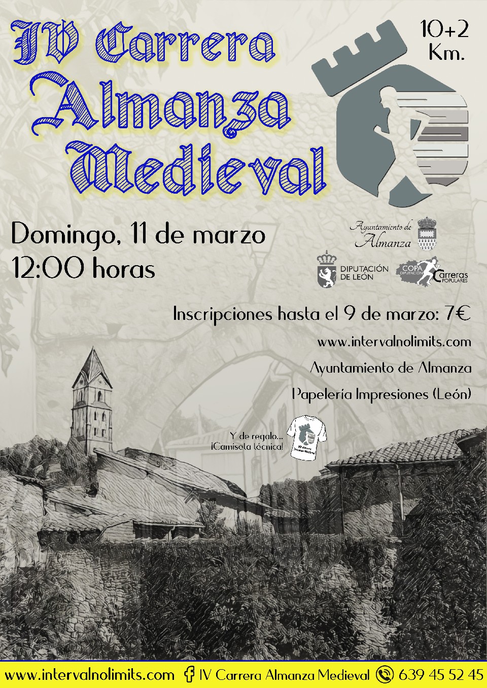 Artículo 1.- La IV Carrera Almanza Medieval es una carrera a pie de 12 km de longitud y unos 200 m de desnivel positivo. La organiza el Ayuntamiento de Almanza y discurre por caminos y calles de la localidad. 10 de los kilómetros discurren por tierra y los 2 restantes por carretera. Está encuadra dentro de la VIII Copa Diputación de Carreras Populares, organizada por la Diputación Provincial de León.