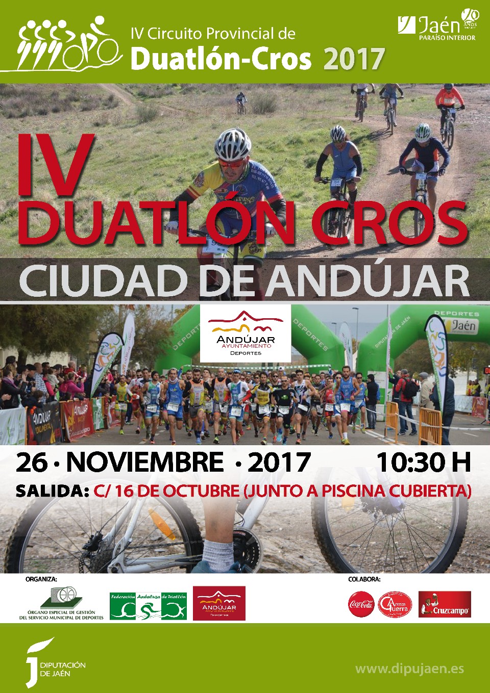 Sailkapenak MASCULINOS 26/11/2017 10:30 27.7km Sailkapenak ikusi FEMENINAS 26/11/2017 10:30 27.7km Sailkapenak ikusi FEDERADOS 26/11/2017 10:30 27.7km Sailkapenak egiteke NO FEDERADOS 29km Sailkapenak egiteke Kontaktuaren informazioa Antolatzailearekin harremanetan jarri – 639 616 571 Araudia http://www.triatlonandalucia.org/competiciones/iv-duatl%C3%B3n-cros-ciudad-de-and%C3%BAjar
