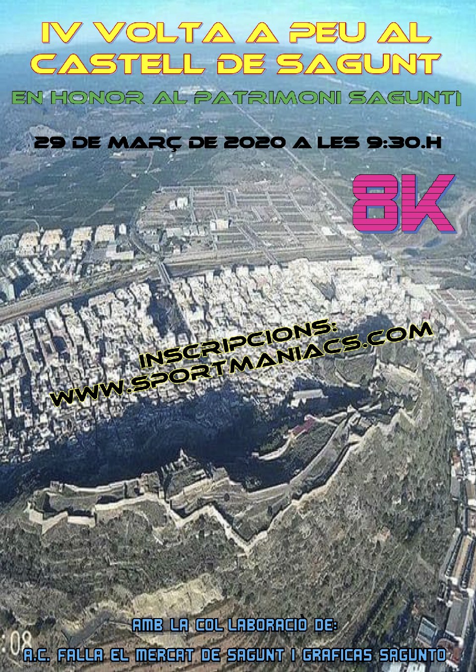 Esta carrera de 8 kilómetros se celebrará el domingo 29 de marzo de 2020 en la ciudad de Sagunto. Dará comienzo a la 9:30 horas. El tiempo máximo para completar el recorrido será de 3 horas.