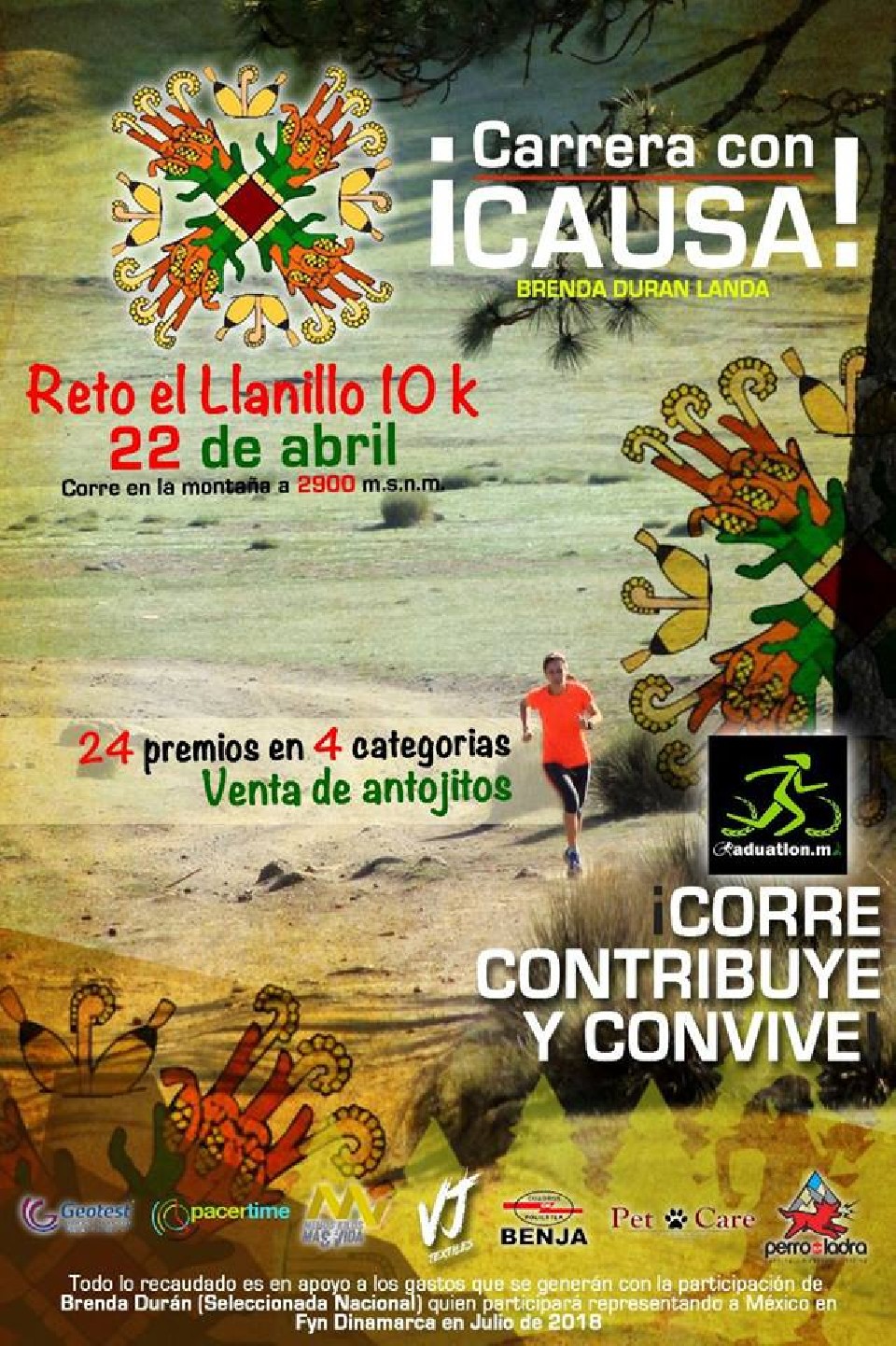 Amigos de la comunidad Llanillo Redondo han organizado la Carrera Reto El Llanillo para empoderar a los habitantes de éste hermoso lugar con gente amable, de trato cálido y al mismo tiempo apoyar económicamente a la destacada atleta Brenda Durán Landa quien tiene ya el pase para el Campeonato Mundial de Duatlón a celebrarse en Dinamarca en el mes de julio del presente año, quien representará al Estado y al País buscando obtener el máximo galardón. Por ello el Comité Organizador Reto Llanillo invita a todos los corredores, clubes, equipos y asociaciones a participar en la Carrera RETO LLANILLO 10K que se efectuará bajo las siguientes bases: