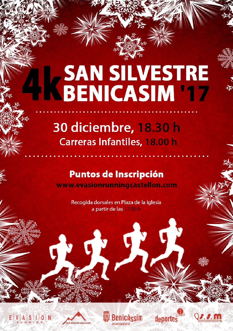 Sailkapenak San Silvestre Benicàssim 30/12/2017 18:30 4km Sailkapenak egiteke Kontaktuaren informazioa Antolatzailearekin harremanetan jarri – 964830010 Araudia http://evasionrunningcastellon.com