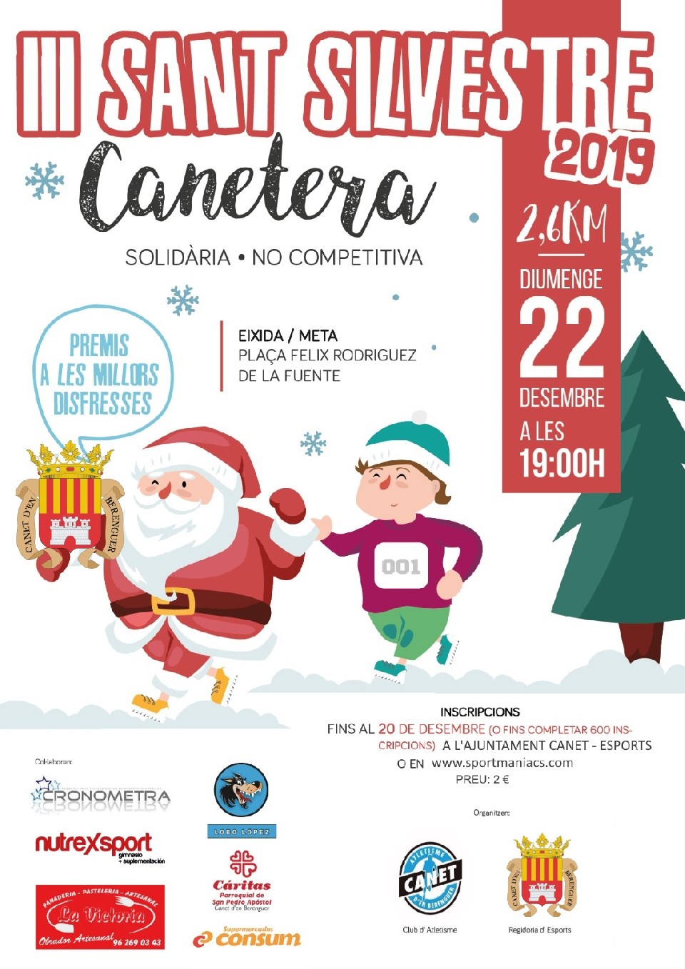 La Concejalía de Deportes del Ayuntamiento de Canet d´en Berenguer y el Club d´Atletisme Canet d´en Berenguer coorganizan la III Carrera solidaria navideña denominada “San Silvestre Canetera” 2019, el domingo día 22 de diciembre de 2019 a las 19 horas, la cual se regirá de acuerdo con el siguiente reglamento:
