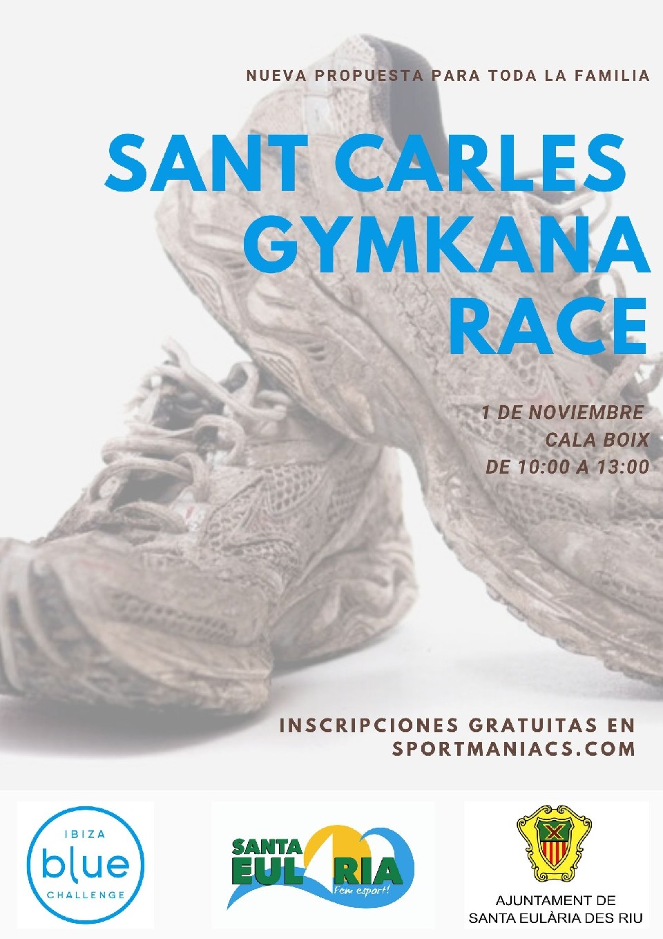 Ibiza Blue Challenge organiza la I SANT CARLES GYMKANA RACE con el patrocinio del Ayuntamiento de Santa Eulària des Riu. La prueba se celebra el domingo 1 de noviembre entre las 10:00 y las 13:30 en la parroquia de Sant Carles en la zona de Cala Boix y Pou d´es Lleó.