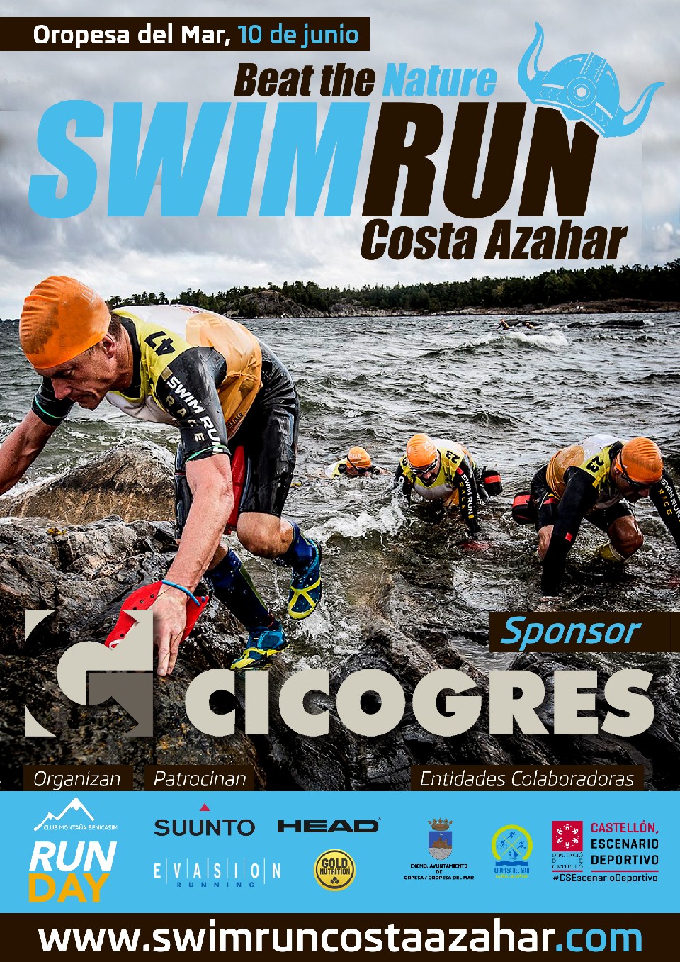 La SWIMRUN COSTA AZAHAR by CICOGRES 2018 en colaboración con el Ayuntamiento de Oropesa del Mar y la Diputación de Castellón. Su organización ejecutiva corresponde Club de Montaña de Benicasim junto a Evasion Running Castellón y Runday.