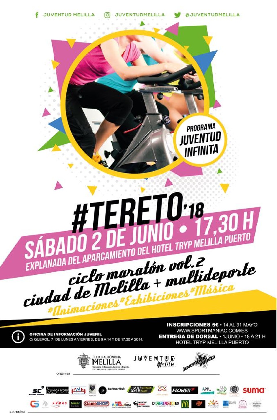 “#TeReto” es un Ciclo Maratón integrado dentro de las actividades del Programa organizado por la Viceconsejería de la Mujer y de Juventud “Juventud Infinita, Melilla 2018” y en el que podrán participar todas aquellas personas mayores de 16 años, siendo el objetivo del reto el completar un total de 6 sesiones de 45 minutos de duración cada una.