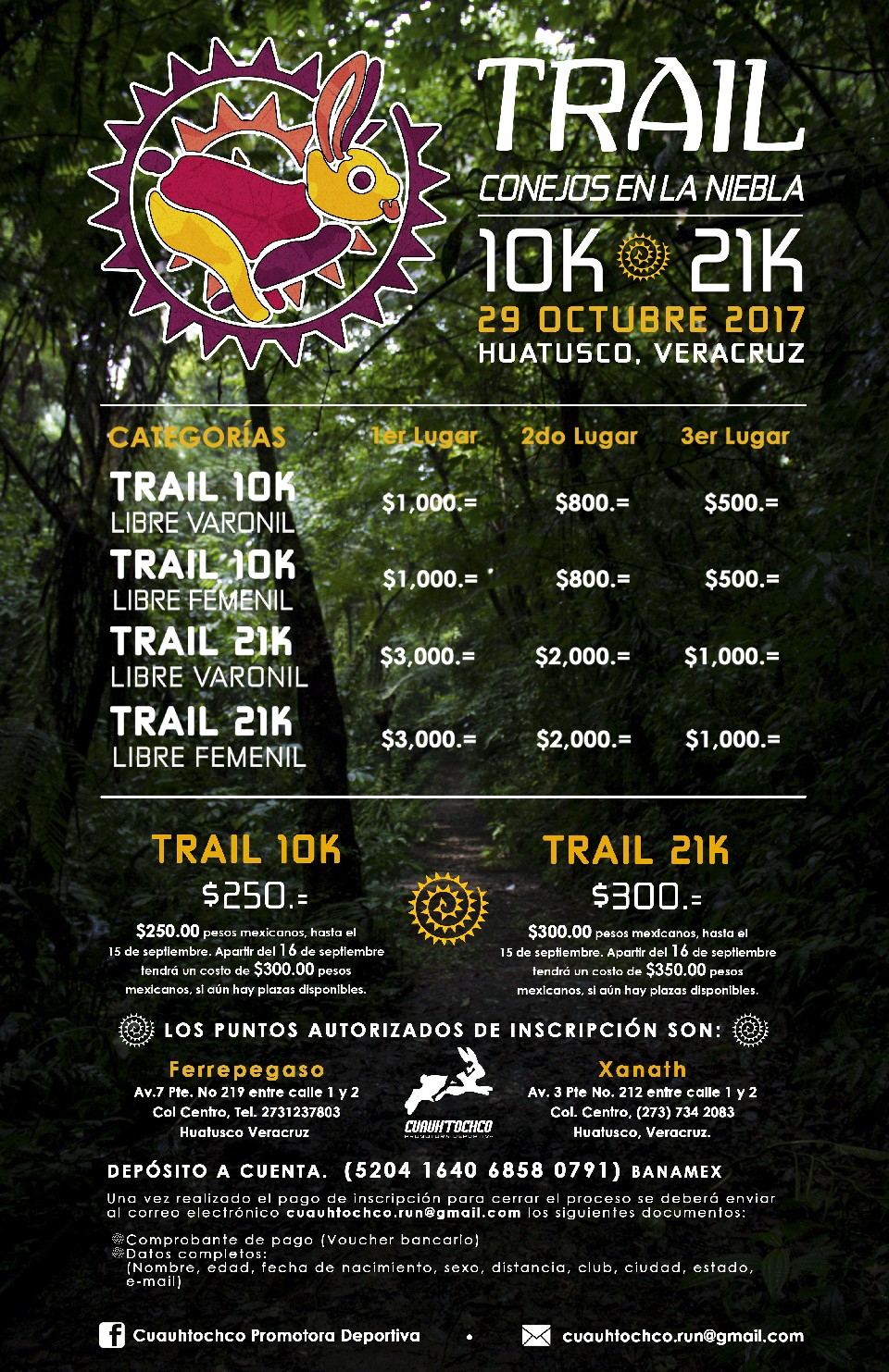 Una vez realizado el pago de inscripción para cerrar el proceso se deberá enviar al correo electrónico Cuauhtochco.run@gmail.com los siguientes documentos: