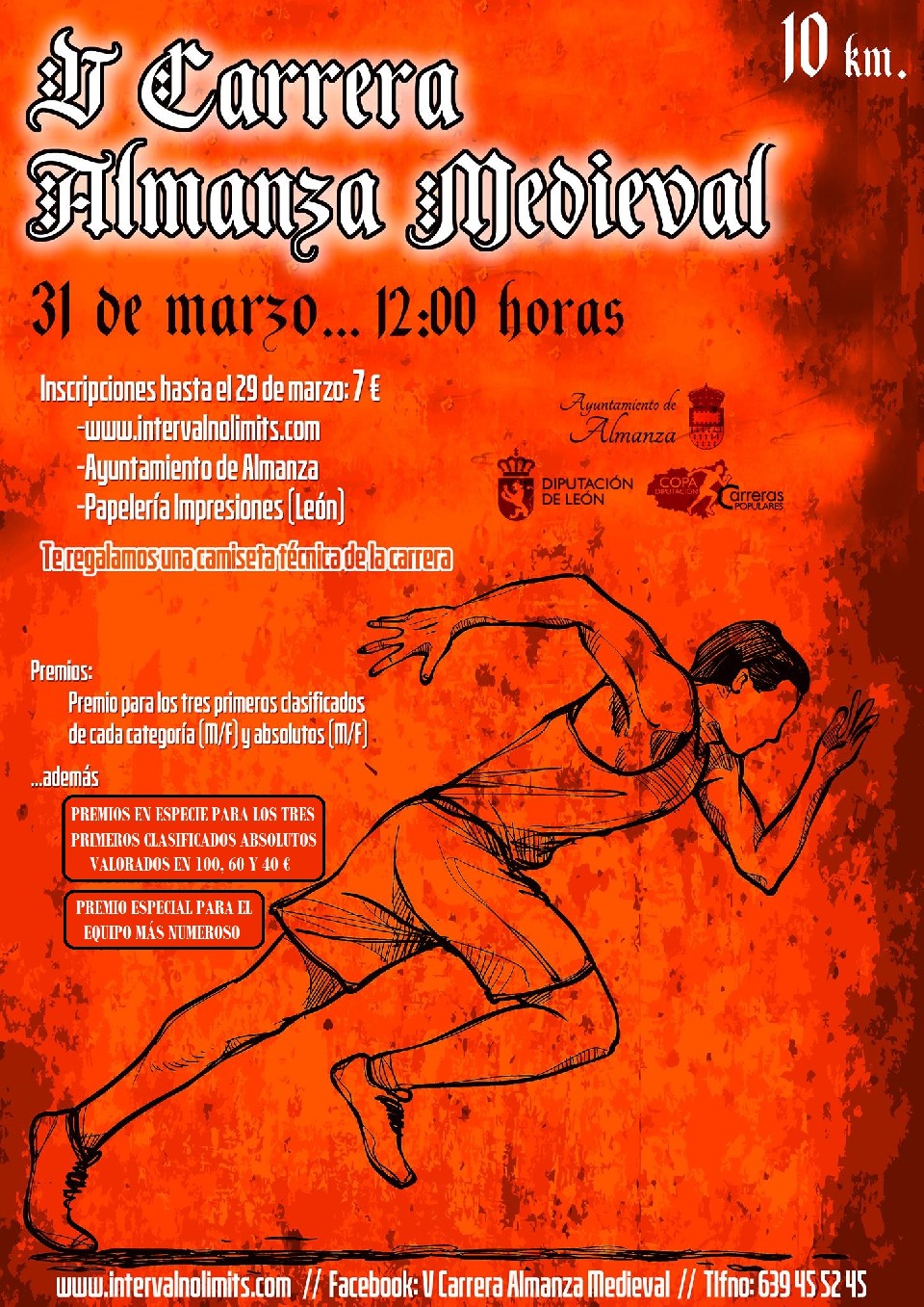 Artículo 1.- La V Carrera Almanza Medieval es una carrera a pie de 10 km de longitud y unos 200 m de desnivel positivo. La organiza el Ayuntamiento de Almanza y discurre por caminos y calles de la localidad. Está encuadra dentro de la IX Copa Diputación de Carreras Populares, organizada por la Diputación Provincial de León.