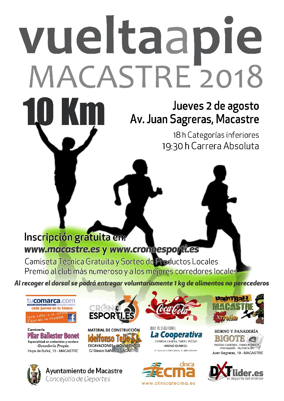 2. La prueba tendrá lugar el jueves 2 de agosto de 2018 a partir de las 18 h las categorías inferiores y a las 19:30 h la prueba absoluta, con salida desde la Avenida Juan Sagreras de Macastre.