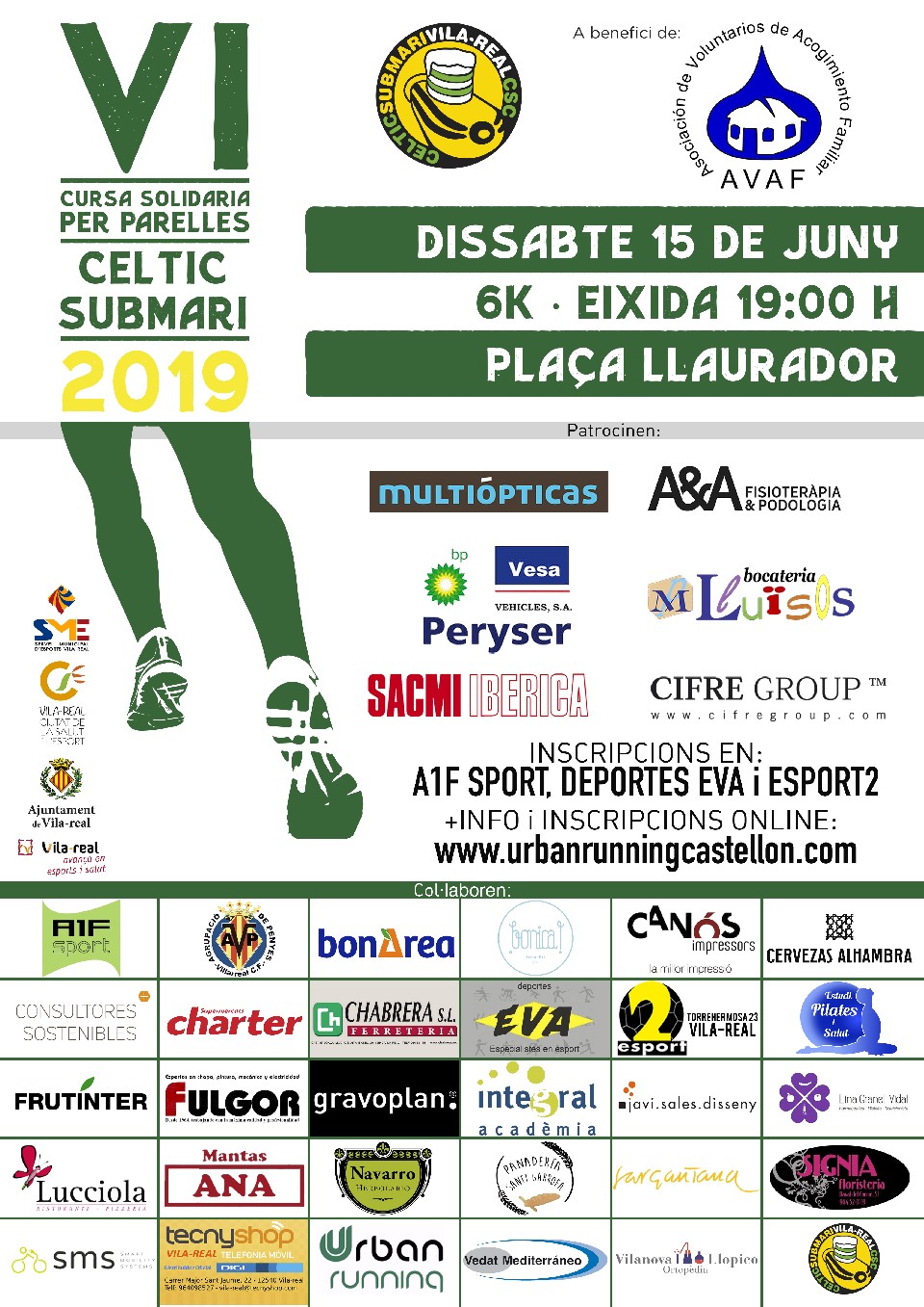 REGLAMENT DE LA CURSA Article 1. La penya Celtic Submarí i AVAF Castelló, organitzen, amb la col.laboració de l’Il.lustrisim Ajutament de Vila-real i altres entitats, la “VI Cursa solidària per parelles Celtic Submari”, a benefici de l’Associació de Voluntaris d'Acolliment Familiar (AVAF), Delegació de Castelló, i que forma part del Circuit de Carreres Populars de Vila-real. El recorregut de la cursa es podrà completar tant corrent com caminant i en ella podrá participar qualsevol persona, sense distinció d’edat, sexe o nacionalitat. Article 2. La distància de la cursa será de 6 km. El recorregut transcorrerà sobre un circuit mixte d’asfalt i camí de terra, que haurà de ser cobert totalment pels atletes participants i estarà cronometrat amb sistema de xip. Article 3. La finalitat de la cursa és que la prova es realitze per parelles, de forma que els dos components arriben junts a meta. No obstant això, la cursa també es podrà realitzar de manera individual, però aquesta modalitat no es premiarà. Els particiants menors d'edat precisaran d'autorització per part del representant legal. Article 4. La prova tindrà lloc el dia 15 de juny de 2019 a les 19.00 hores, amb eixida i arribada al Camí de l’Ermita, enfront de l'Estadi de La Ceràmica. El temps màxim per a completar el recorregut de la cursa será de quaranta cinc (45) minuts. Article 5. La inscripció a la prova tindrà un preu de 6 € per participant (12 € per parella) fins el dia 9 de juny, i de 8 € per participant (16 € per parella) fòra d’aquest termini, i es podrà fer de forma presencial o telemàtica, als següents punts: • A1F Sport, Carrer del Mestre Goterris, 5 baix (Vila-real) • Deportes Eva, Raval de Sant Pasqual,19 (Vila-real) • Esport-2, Carrer de Torrehermosa, 23 (Vila-real) • Urban Running, Carrer Pérez Galdós, 4 baix (Castelló de la Plana) • En línia: www.urbanrunningcastellon.com El termini de inscripcions s'obrirà el dia 20 de maig i finalitzarà el dia 11 de juny per a les inscripcions en tenda, i el 12 de juny a les 12:00 h, per a les inscripcions en línia (web). Les inscripcions que es facen fòra d'aquest termini no tindran dret a xip de cronometratge ni a bossa del corredor. El lliurament de dorsals i bossa del corredor s’efectuarà el 14 de juny de 18:30 a 20:30 h a la seu de la Penya Celtici Submari (Carrer Solaes, 16. Vila-real) i el mateix dia de la prova de 17.00 a 18.30 h a la plaça del Llaurador. Existirà un Dorsal 0 per a que totes aquelles persones que vulguen col.laborar amb la finalitat de la prova, puguen aportar el seu donatiu sense necessitat d’inscriure’s a la cursa. Aquest Dorsal 0 estarà disponible a tots els punts d'inscripció. Article 6. Les categories de la prova serán les següents: - Parella masculina - Parella femenina - Parella mixta L’organització obsequiarà a les tres primeres parelles de cada categoria. També s’entregarà un obsequi a la parella de més anys, sumant l’edat dels seus components. Per a determinar el temps oficial de cada parella es tindrà en compte el temps d’arribada a meta del seu segon corredor. Pel que fa a la puntuació per a la classificació general del Circuit de Carreres Populars sols puntuaran els participants majors de 14 anys i s’aplicarà el sistema de puntuació descrit a l'article 4 del Reglament del Circuit (https://es.circuitcarrerespopularsvila-real.com/ ) Article 7. S’habilitarà un únic punt d’avituallament sòlid i liquid, que s’ubicarà a la zona de meta. Article 8. Els participants estaran coberts per una pòlissa d’assegurances de responsabilitat civil i una altra d’accidents proporcionades per l’organitzador. L’organització declina qualsevol responsabilitat dels danys físics o morals que durant la participació en aquesta prova puga un participant causar a si mateix o a tercers. Article 9. Els serveis sanitaris i d’ambulàncies se situaran a la zona de meta durant el temps que es considere necessari per part de l’organització. Article 10. Durant el transcurs de la prova els únics vehícles que podran fer el seguiment de la mateixa serán els propis de l’organització. Article 11. Part del recorregut de la cursa transcorre pel Paisatge Protegit de la Desembocadura del Riu Millars. Els participants es comprometen a tindre una conducta respectuosa amb el medi natural i procuraran no deteriorar l'entorn natural. Es prohibeix tirar papers, plàstics o qualsevol altre tipus de residu al sòl. Article 12. Els participants que no respecten el reglament, atenten contra la seguretat dels altres corredors, no atenguen a les indicacions de l'organització, no duguen el dorsal visible a la arribada, participen amb un dorsal o chip asignat a un altre corredor, no completen el recorregut de la prova en la seua totalitat o superen el temps màxim establert per a finalitzar la cursa seran desqualificats. Article 13. Tots els participants, pel fet de prendre la sortida, assumeixen l’acceptació del contingut d’aquest reglament. L’organització declina qualsevol responsabilitat relativa als participants que realitzen la prova sense dorsal o sense haver formalitzat com cal la inscripció.