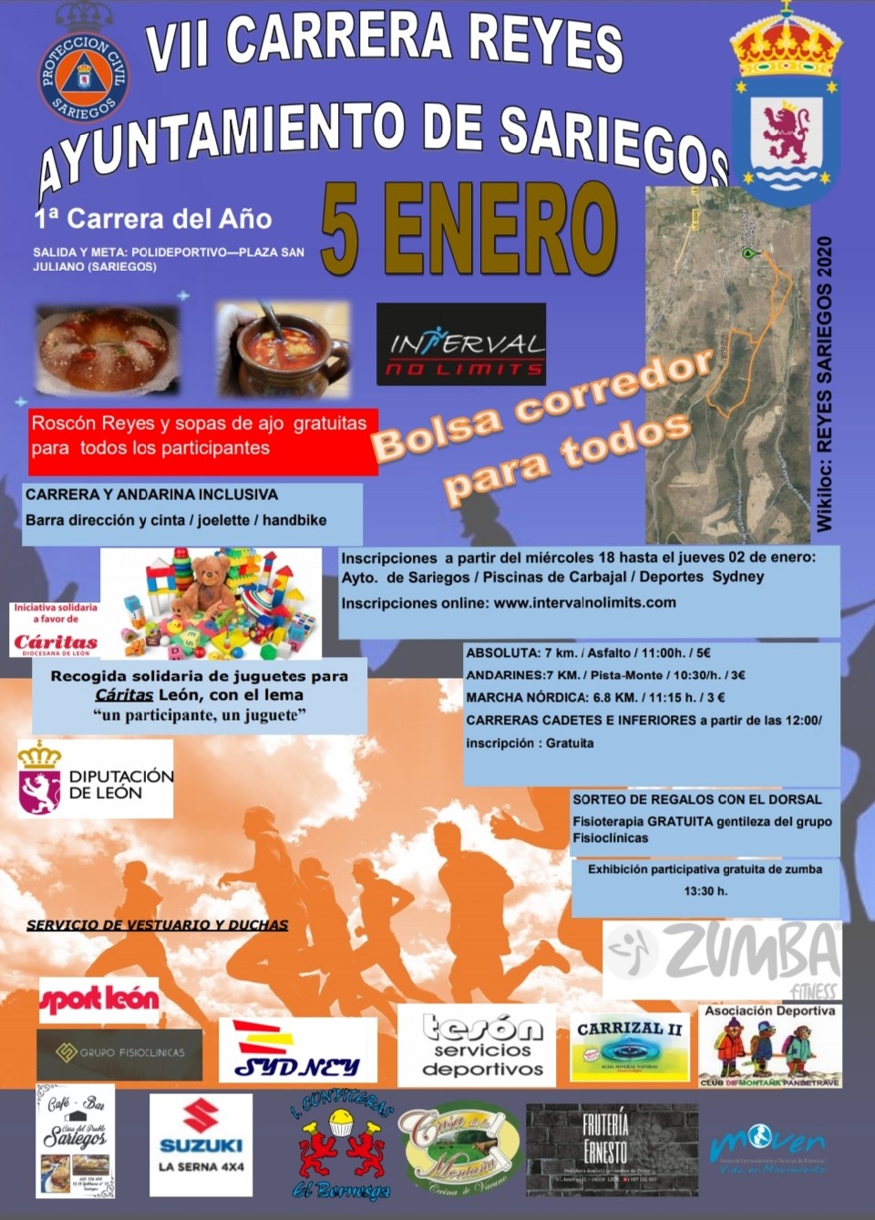 El próximo Domingo 05 de Enero de 2020 se disputara la “VII CARRERA REYES AYUNTAMIENTO DE SARIEGOS”.