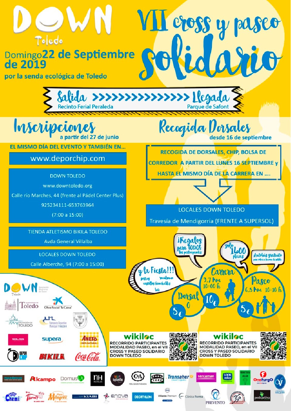 Sailkapenak RECORRIDO CROSS - Cierre de inscripciones 21/09/2018 - Hasta las 20:00pm 22/09/2019 10:00 9.7km Sailkapenak ikusi RECORRIDO PASEO - Cierre de inscripciones 21/09/2019 - Hasta las 20:00pm 22/09/2019 10:05 6.5km Sailkapenak egiteke DORSAL SOLIDARIO CROSS Y PASEO DOWN TOLEDO Sailkapenak egiteke Kontaktuaren informazioa Antolatzailearekin harremanetan jarri – Araudia http://www.deporchip.com/eventos/pruebas2019/downtoledo19/reglamento.pdf