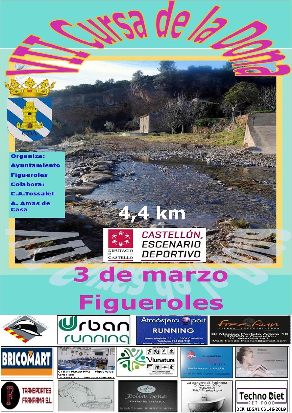 La VII Cursa de la Dona es una carrera que combina recorrido de pista de tierra y senda, con una distancia de 4,4km apto para "todos los públicos" ya que no es nada exigente, se puede hacer corriendo o caminando, con suaves subidas y suaves bajadas. Un recorrido muy bonito rodeado de naturaleza. Tendrán premio las tres primeras de cada categoría. La hora de comienzo será a las 10:00 de la mañana el 3 de marzo, la salida y meta estarán situadas en la Calle Alcora.