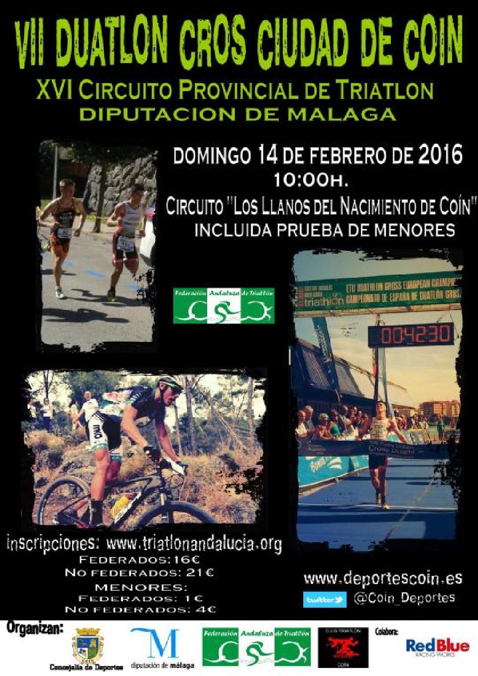 1. El VII Duatlón Cros de Coin es una competición organizada por el Excmo. Ayuntamiento de Coín, la Federación Andaluza de Triatlón (Delegación de Málaga), Diputación Provincial de Málaga y colabora el Club Triatlón Coín.