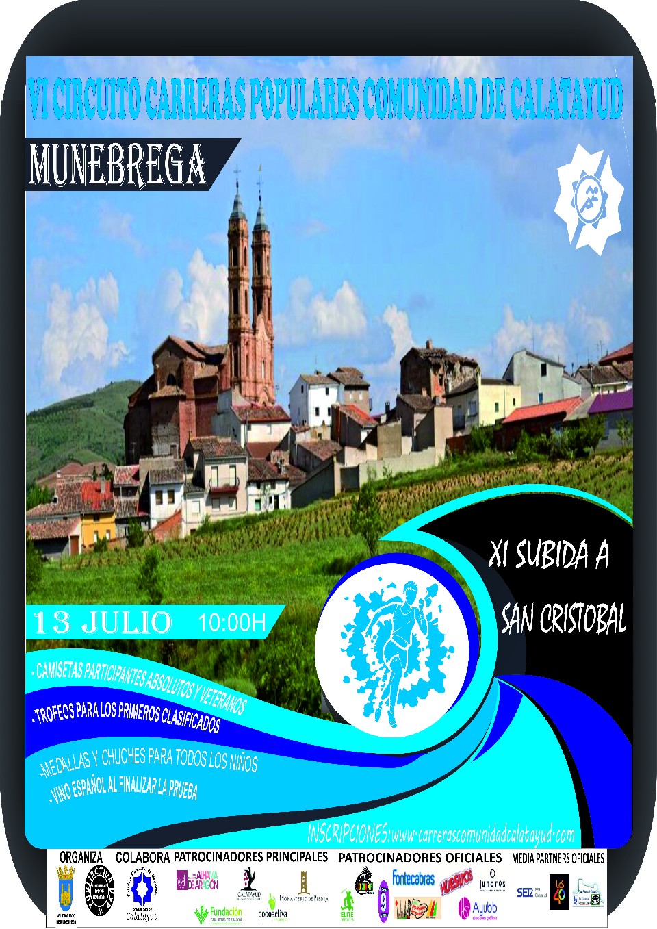 • El próximo día 13 de julio de 2019, con motivo de la festividad de San Cristóbal en la localidad de Munébrega (Zaragoza), el Excmo. Ayuntamiento de Munebrega, Publiactivavyp y el Club Bantierra Atletismo Calatayud organizan la “XI Subida a San Cristóbal”.