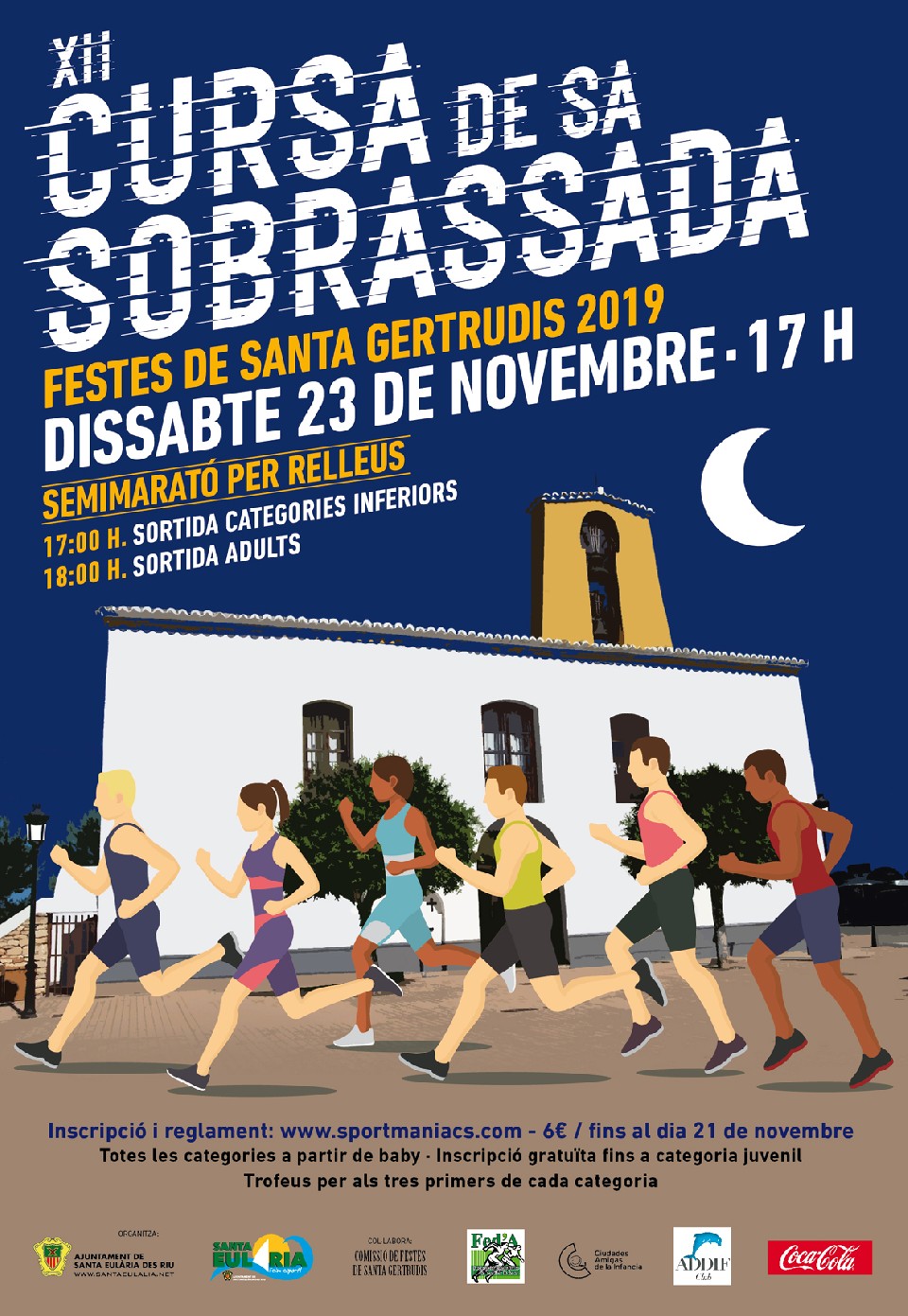 El Ayuntamiento de Santa Eulària organiza la XII Cursa de Sa Sobrassada, carrera en ruta sobre asfalto a la que tendrán acceso todas las personas que lo deseen, con o sin licencia federativa.Las pruebas se disputarán el sábado 23 de noviembre y darán comienzo a partir de las 17.00h.