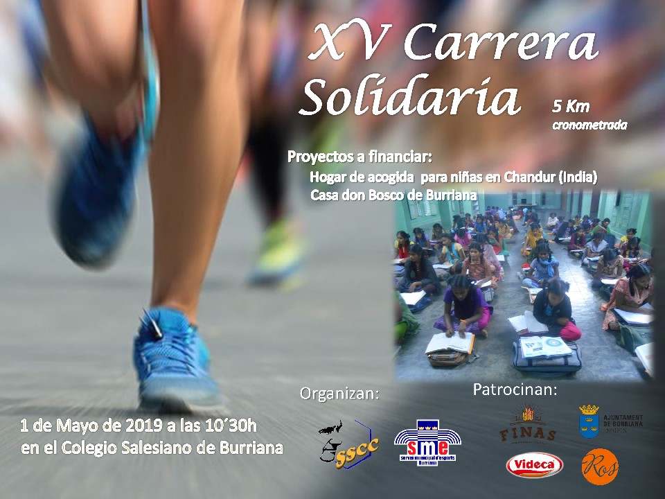 DONATIVO INSCRIPCIÓN: Será de 7 euros, y se podrá realizar desde el lunes 15 al miércoles 17, y el martes 30 de Abril de 2019. Las aportaciones a la carrera irán destinadas, en su totalidad, a colaborar económicamente en mejorar la salud de las niñas del hogar de acogida María NIketan en Chadur (India) y con la casa de acogida Don Bosco de Burriana.