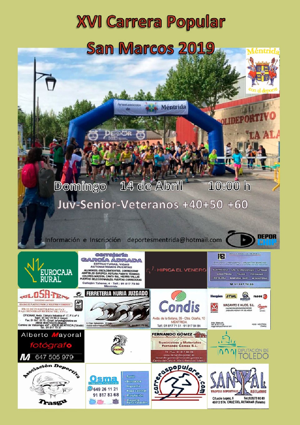 Sailkapenak GENERAL 14/04/2019 10:00 7.6km Sailkapenak ikusi Kontaktuaren informazioa Antolatzailearekin harremanetan jarri – Araudia http://www.deporchip.com/eventos/pruebas2019/mentrida19/reglamento.pdf