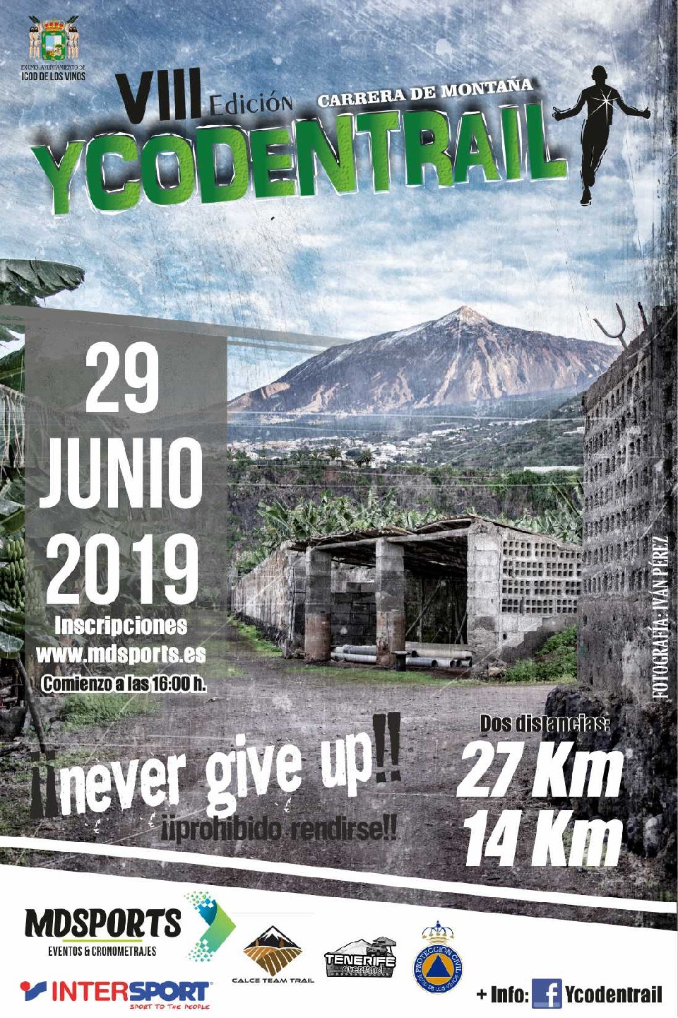 La prueba está organizada por DIEGO LUIS PIMENTEL, con la colaboración del AYUNTAMIENTO DE ICOD DE LOS VINOS. La carrera se celebrará el SÁBADO 29 de JUNIO de 2019 y dará comienzo a las 16:00 horas la distancia 27 km y a las 16:15 la de 14 km, los atletas deberán de haber pasado el control de confirmación antes de las 15:30 h. PARTICIPACIÓN: Podrán participar en esta prueba todas aquellos atletas estén federadas o no federadas que así lo deseen, agrupados en las correspondientes categorías.Todos los participantes deberán tener 18 años cumplidos en la fecha de carrera y poseer un nivel de condición física adecuado para afrontar una prueba de estas características.Todos los participantes deberán cumplimentar y entregar firmado el descargo de responsabilidad a la organización en el momento de la retirada de dorsales. La prueba será controlada por la empresa MDSPORTS CRONOMETRAJES quien realizará las clasificaciones y por el personal que la organización designe. INSCRIPCIONES: las inscripciones tendrán un coste de 27 euros para la distancia de 27 km y de 14 euros para la de 14 Km. Se podrán realizar hasta el 16 de JUNIO a la 23.59 h. en los sitios habilitados por la Organización. Lugares de inscripción: - En la web www.mdsports.es (opción online) La inscripción incluye - Participación en la carrera - Avituallamiento líquido y sólido durante la carrera. - Dispositivo de seguridad. - Camiseta conmemorativa. - Avituallamiento de meta. La inscripción es personal e intransferible y supone la aceptación del presente reglamento. Desde el momento de la inscripción y solo hasta el 16 de Junio de 2019, la organización permitirá la cancelación de las inscripciones efectuando una retención de 5 euros de la cuota de inscripción, en concepto de gastos de gestión. A partir de esa fecha, no se procederá al retorno del importe en caso de no participación, sea cual fuere el motivo. En caso de suspensión de la prueba antes de su inicio por motivos climatológicos u de fuerza mayor, la organización no procederá a la devolución del importe recibido. La entrega de dorsales se realizará el sábado 29 de junio en el horario de 10:00 a 14:00. En la Plaza Andrés de Lorenzo Cáceres CATEGORÍAS, DISTANCIAS Y HORARIOS DE SALIDA: * Junior – Promesa M y F Nacidos en 1997 A 2001 ( ) * Senior M y F Nacidos/as en 1996 – 1990 ( ) * Veterano/a M y F 30: Nacidos/as entre 1980 – 1989 ( ) * Veterano/a M y F 40: Nacidos/as entre 1970 – 1977 ( ) * Veterano/a M y F 50: Nacidos/as entre 1960 – 1969 ( ) * Veterano M 60: Nacidos en 1959 y anteriores ( ) Habrá trofeos para las y los tres primeros de las distintas categorías y para los tres primeros/as de la clasificación general masculina y femenina. Los trofeos son acumulativos. La entrega de los premios y trofeos se realizara únicamente el día de la carrera, una vez aprobadas las clasificaciones por el comité Organizador. Los participantes toman parte en la prueba y lo hacen bajo su responsabilidad. Sobre ellos recae la decisión de la salida y realización de la carrera. Es responsabilidad de cada participante estar físicamente preparado para realizar la prueba. Los participantes eximen a la organización de las reclamaciones o demandas basadas en supuestas acciones o no acciones de los participantes u otros que actúen a su favor. Así como de las demandas resultantes de los daños que puedan sucederles a ellos o a sus materiales. Los participantes deberán firmar los documentos que se requiera para evidenciar más claramente este apartado del reglamento. Toda reclamación hecha sobre cualquier anomalía ocurrida durante el desarrollo de cualquiera de las carreras deberá presentarse debidamente documentada al jurado de la prueba después de la finalización de la misma. Los participantes deberán llevar en todo momento el dorsal facilitado por la organización en un lugar visible, de tal manera que puedan facilitar la labor de control por parte del personal de la organización. Los dorsales no se podrán recortar, doblar ni modificar. Los participantes deberán respetar el medio en el que se realiza la prueba y mantener escrupulosamente limpio el entorno. Para ello se deberá comer y beber SIN DEJAR UN SOLO ENVASE FUERA DE LOS RECIPIENTES habilitados para ello. El incumplimiento de este punto implica la descalificación inmediata. La organización se reserva los derechos exclusivos de las imágenes, fotografías, video e información de la prueba, en las que puedan aparecer los participantes, así como de utilizar ese material para anuncios, relaciones públicas o cualquier otro propósito periodístico o de promoción del evento. Cualquier proyecto mediático o publicitario deberá contar previamente con el consentimiento de la organización. No se permitirá la realización de inscripciones el mismo día, ni cambios, ni cualquier anomalía que interfiera en el desarrollo del programa de carrera. MATERIAL NECESARIO: Cada atleta deberá de valorar bajo su total responsabilidad cual es el calzado y vestimenta más adecuado para la realización del recorrido, así como la cantidad de agua y otros elementos necesarios. Todo corredor/a deberá realizar el recorrido marcado por la organización, no respetarlo o no pasar por alguno de los controles establecidos, será causa de penalización o descalificación. Los/as participantes, durante el recorrido, deberán seguir en todo momento las instrucciones de los miembros de los controles. Es obligación de cada competidor/a llevar sus desperdicios, latas, papeles, etc. hasta la llegada o lugares señalados por la organización. Un bastón roto durante la competición podrá ser entregado en un control. El corredor/a que no los deposite o los tire en una zona no preparada, será descalificado. La organización desea realizar un llamamiento a todos los participantes para que tenga un especial cuidado con el medio ambiente y que durante el desarrollo de la prueba no se ensucie e