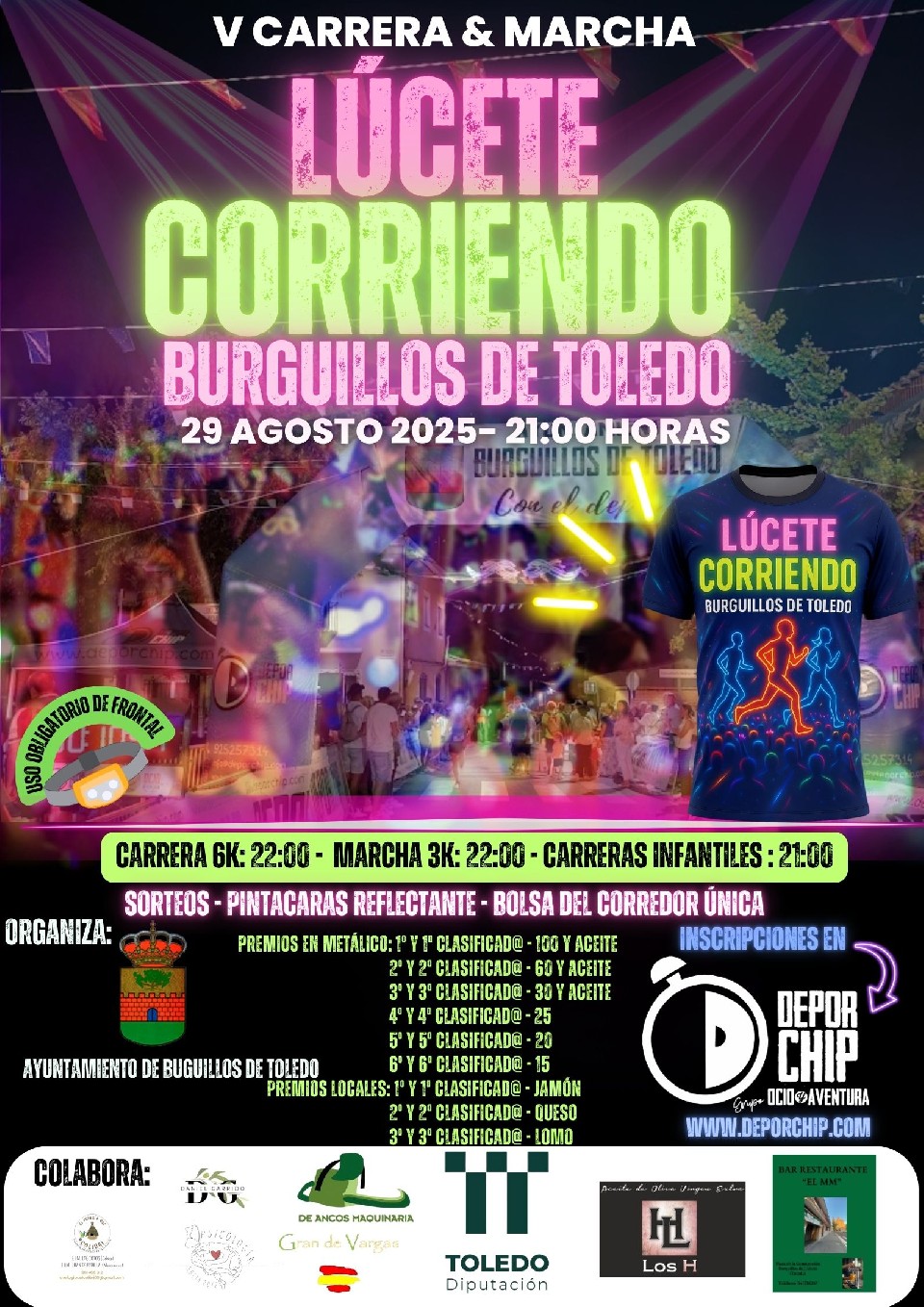Classement MARCHA 29/08/2025 22:00 3km En cours Classement MINI BENJAMIN (Hasta los 5 Años) 29/08/2025 21:00 0.4km En cours Classement BENJAMIN (6-7-8 Años) 29/08/2025 21:10 0.5km En cours Classement ALEVIN (9-10-11 Años) 29/08/2025 21:20 1km En cours Classement INFANTIL (12 y 13 Años) 29/08/2025 21:30 1.5km En cours Classement CADETE (14 y 15 Años) 29/08/2025 22:00 3km En cours Classement CADETE 3km Voir les classements ABSOLUTA 29/08/2025 02:00 6km Voir les classements Information de contact Contacter l'organisateur – 925257314 Règlement Aquí