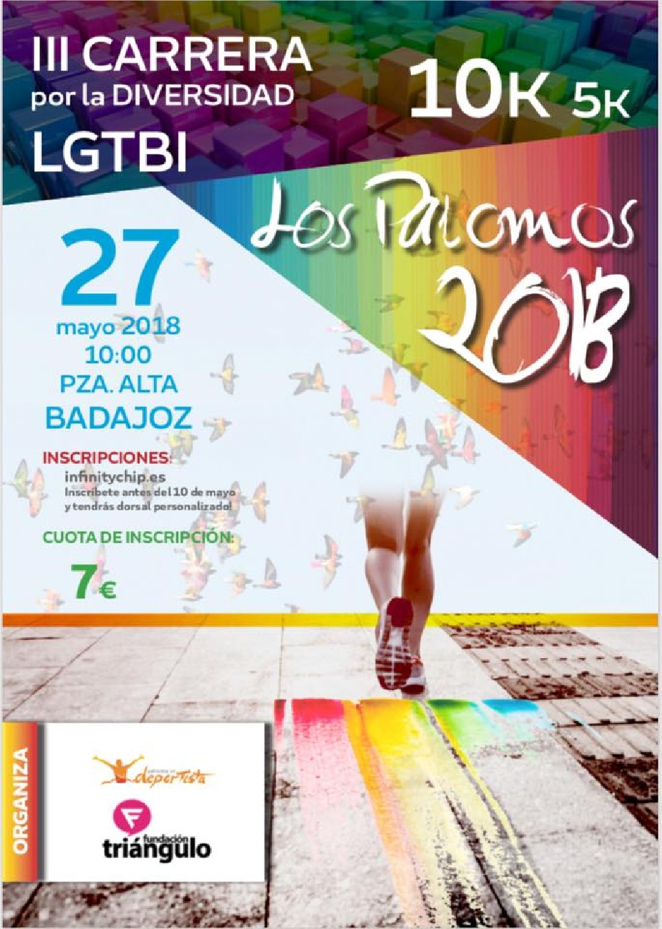 El domingo 27 de mayo de 2018 a partir de las 10.00 de la mañana, se celebrará en la localidad de Badajoz la “III CARRERA POR LA DIVERSIDAD LGTBI · LOS PALOMOS 2018”, prueba organizada por Patrocina un Deportista con la colaboración de Fundación Triángulo.