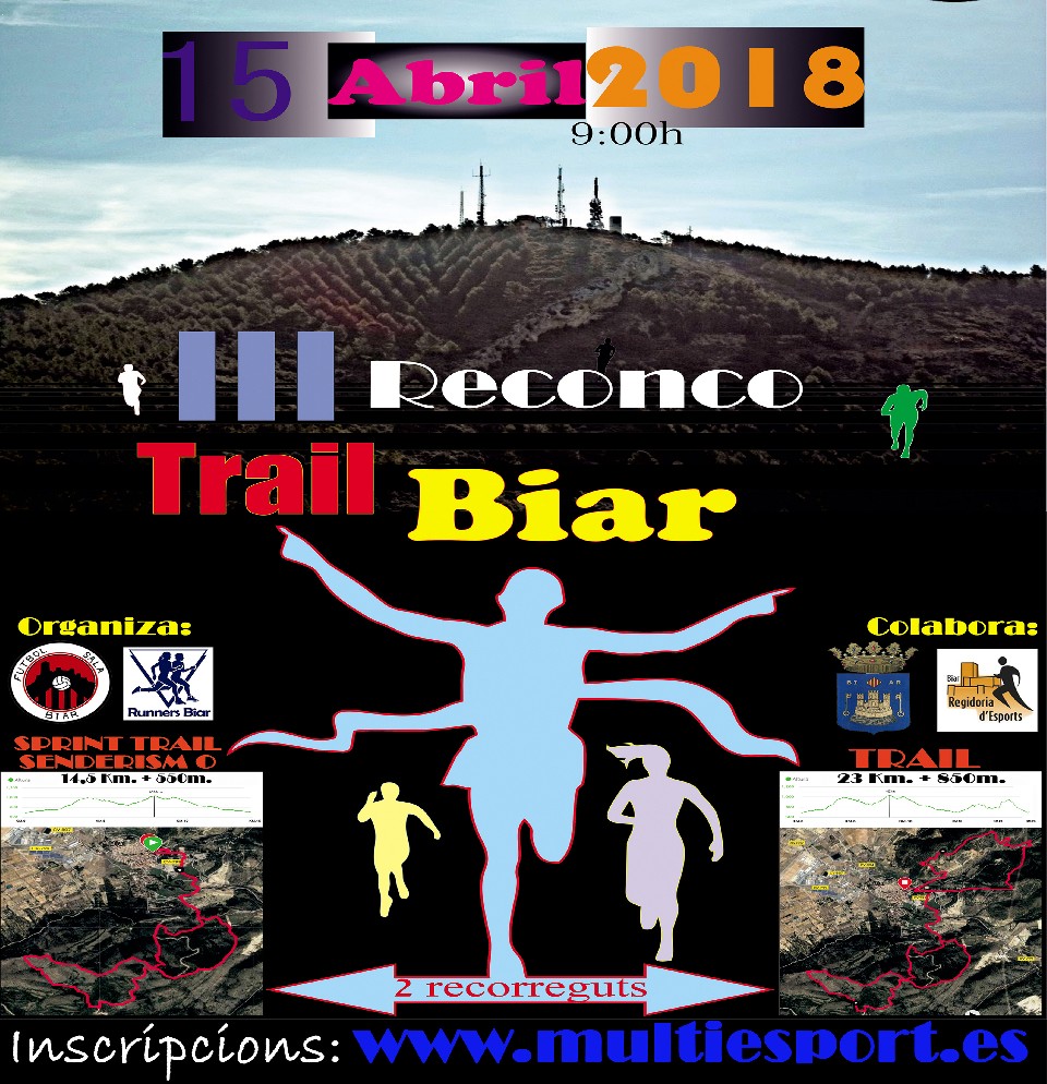 El domingo 15 de Abril de 2017 tendrá lugar el III Trail Reconco Biar, aprox. 23 Km. y 14,5 Km.