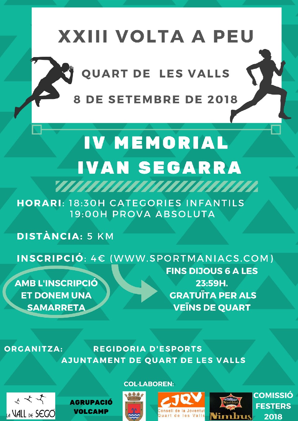 Art. 1) La Regidoria d’Esports de l’Ajuntament de Quart de les Valls organitza la XXIII Volta a Peu a Quart de les Valls IV Memorial Iván Segarra amb la col·laboració dels Festers de 2018, C.A. La Vall de Segó i altres organismes.