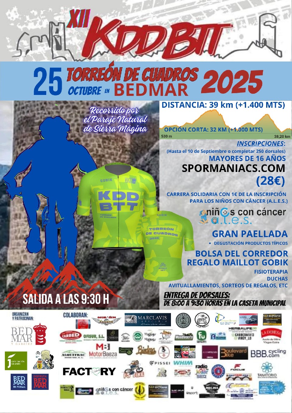 Classificações XII KDD BTT Torreón de Cuadros Bedmar 2025 25/10/2025 09:30 39Km Pendente INSCRIPCION COLECTIVA XII KDD BTT Torreón de Cuadros Bedmar 2025 25/10/2025 09:30 39Km Pendente Informação de contacto Contactar com o organizador – Regulamento REGLAMENTO