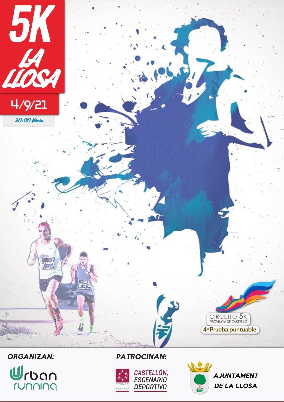 Artículo 1º. C.A.URBAN RUNNING Y EL AYUNTAMIENTO DE LA LLOSA organizan la edición de la carrera pedestre denominada 5K- LA LLOSA , prueba atlética en la que podrán participar todas las personas que lo deseen, debidamente inscritas, con 16 años cumplidos antes del día de la prueba. De acuerdo con las limitaciones establecidas en la Normativa de la RFEA para pruebas de ámbito autonómico.