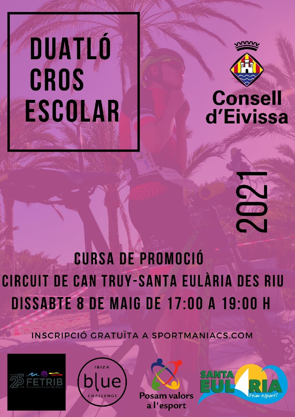 1. El DUATLÓ CROS ESCOLAR 2021 es una prueba organizada por la Federación Balear de Triatlón e Ibiza Blue Challenge, patrocinada por el Consell Insular de Ibiza y con la colaboración del Ayuntamiento de Santa Eulària. La prueba se celebra en los terrenos del restaurante Can Truy y terrenos anexos.