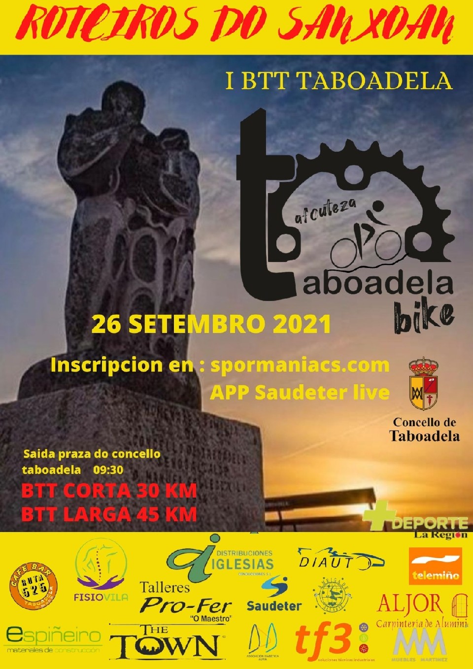 Salida BTT : 9:30 h del 26 de septiembre desde la plaza del Concello de Taboadela.