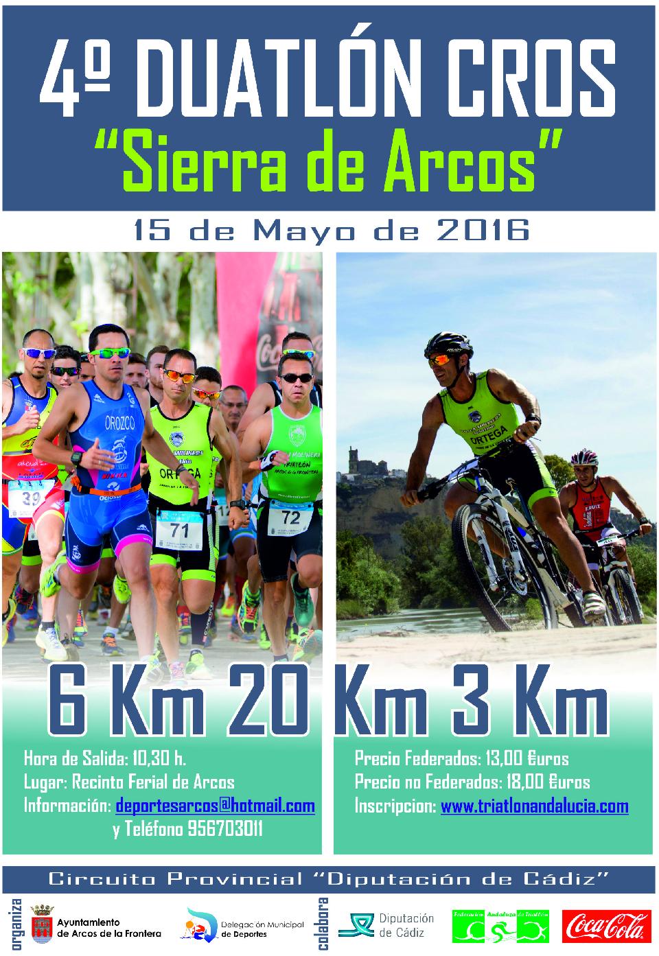 El plazo de inscripción para el IV Duatlón “Sierra de Arcos 2016”, que se celebrará el próximo 15 de Mayo de 2016, finalizará una vez se haya formalizado debidamente 250 inscripciones que es el cupo máximo de participantes fijado para esta edición.