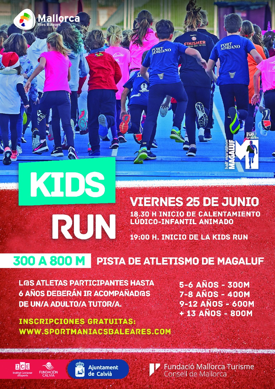 Carrera de carácter lúdico que tiene como objetivo promover la práctica de actividad física entre los niños y niñas del municipio de Calvià y alrededores. El deporte nos permite promocionar valores como el esfuerzo, la integración social, la solidaridad, la colaboración, el juego limpio, el respeto, entre otros, sin olvidarnos del componente social intrínseco que tiene.